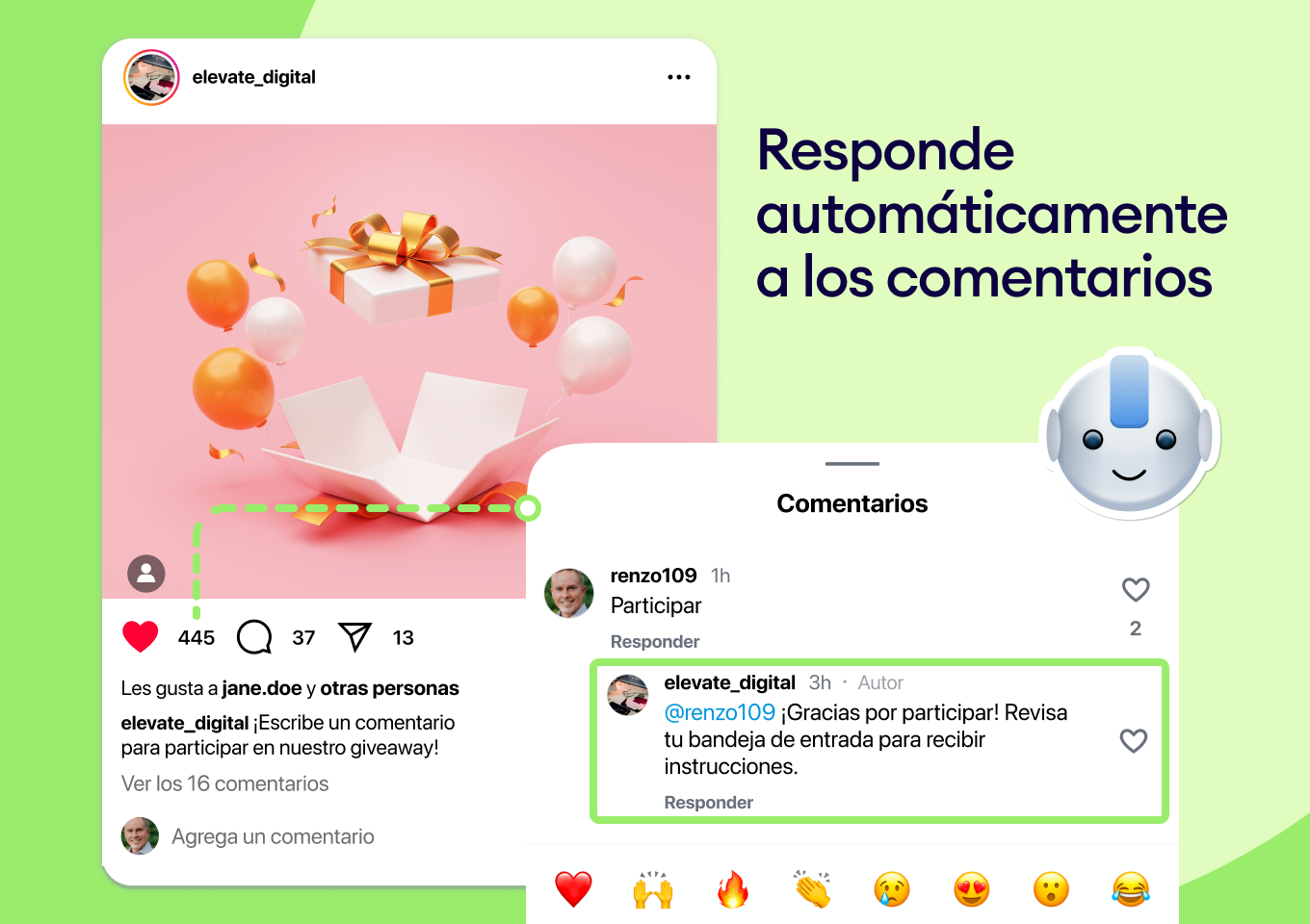 Convierte comentarios públicos en conversaciones privadas al instante mediante respuestas automatizadas.