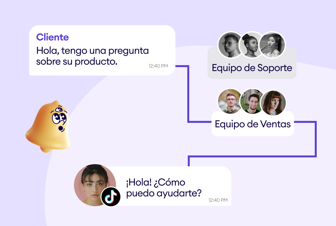 Asigna automáticamente conversaciones al representante de ventas o equipo adecuado.
