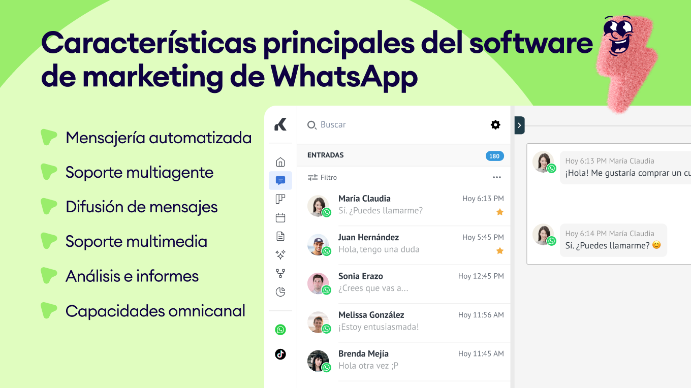 Un WhatsApp marketing software está diseñado para facilitar la comunicación de una empresa con sus clientes a través de WhatsApp. Hace que cada conversación con el cliente a través de WhatsApp sea más rápida, eficiente y personalizada.