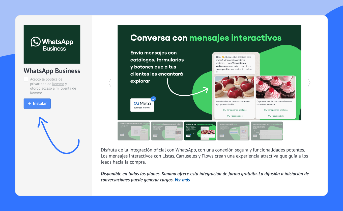 Mejorar tu estrategia de WhatsApp no tiene por qué ser complicado. Como partner oficial de Meta, Kommo hace que la transición sea sencilla, ofreciendo a las empresas acceso a automatización avanzada, mensajería interactiva y gestión multicanal, todo diseñado para llevar tu estrategia de WhatsApp marketing al siguiente nivel.