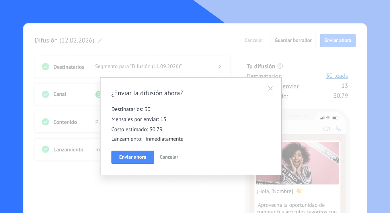 Esta funcionalidad es clave para ejecutar una campaña de marketing de WhatsApp bien estructurada y medir resultados con precisión.