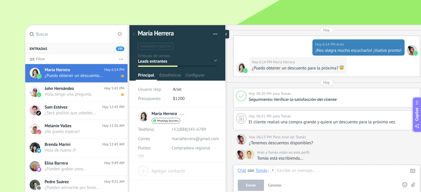 Este nivel de control es fundamental para escalar cómo usar WhatsApp para marketing sin perder oportunidades ni contexto.