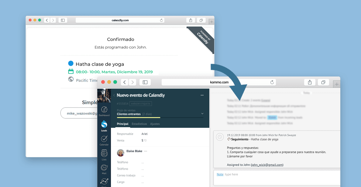 Creación automática de leads: las nuevas reuniones programadas a través de Calendly generan leads automáticamente en Kommo.