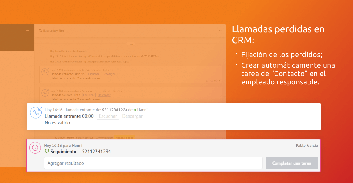 Además de la funcionalidad estándar descrita anteriormente, Itgrix tiene numerosas personalizaciones. Le brindan la ventaja de configurar la interacción entre telefonía y CRM según su propio escenario, adaptado a su empresa. Por ejemplo, configurar listas negras y blancas para troncales, formatear automáticamente los números de teléfono antes de enviarlos al CRM o agregar el nombre de la troncal a la etiqueta del lead.