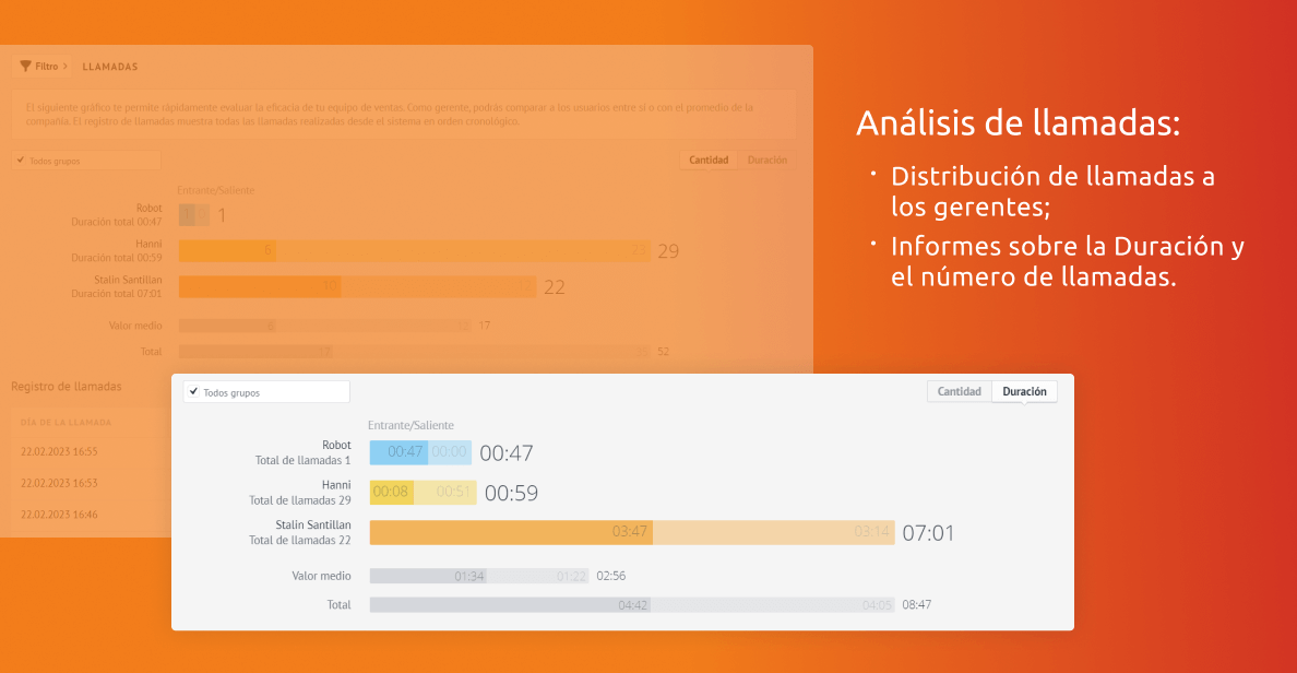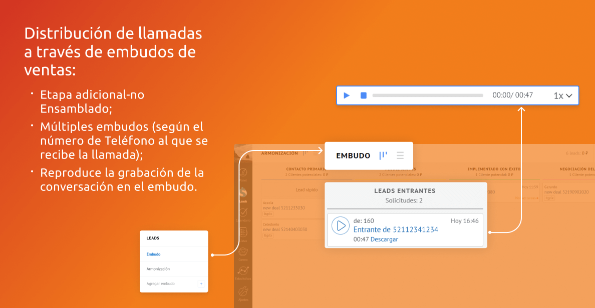Esto permite a los gerentes escuchar grabaciones de llamadas directamente dentro del CRM, recibir recordatorios de llamadas perdidas y personalizar sus propios guiones de llamadas.
