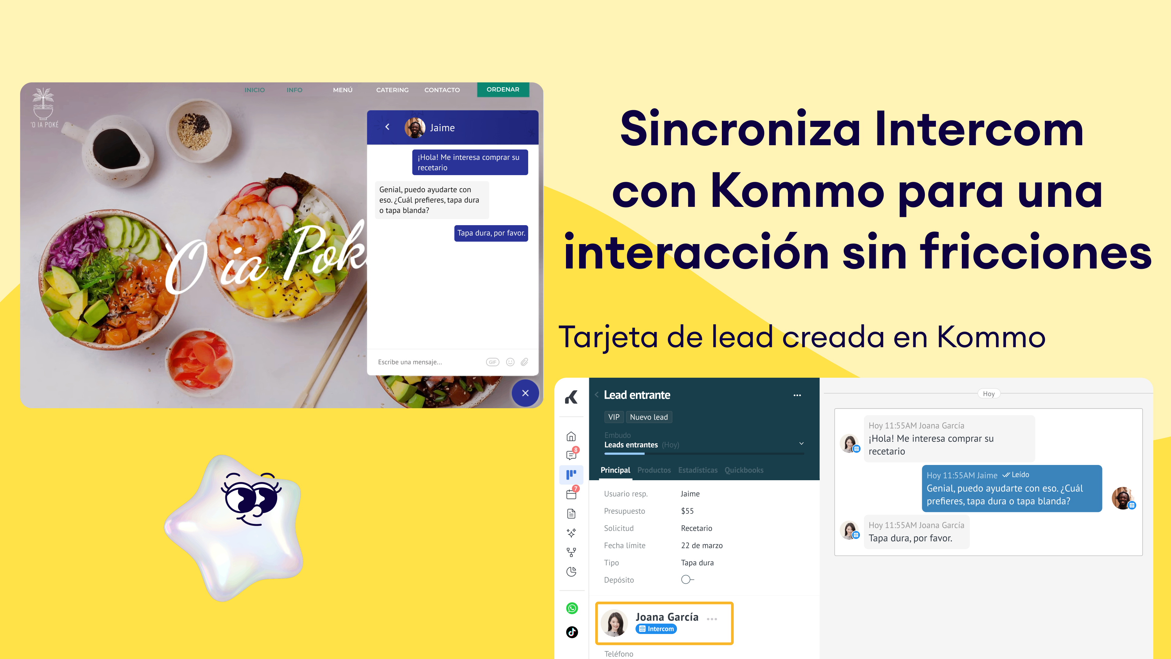 La integración de Intercom en Kommo te ayuda a centralizar la comunicación y el soporte al cliente directamente dentro de tu CRM. Las nuevas conversaciones en Intercom generan automáticamente leads en Kommo, mientras que los contactos existentes se mantienen sincronizados. Esto asegura que los equipos de ventas y soporte nunca pierdan una oportunidad, manteniendo las relaciones con los clientes fluidas desde el primer chat hasta el cierre de la venta.