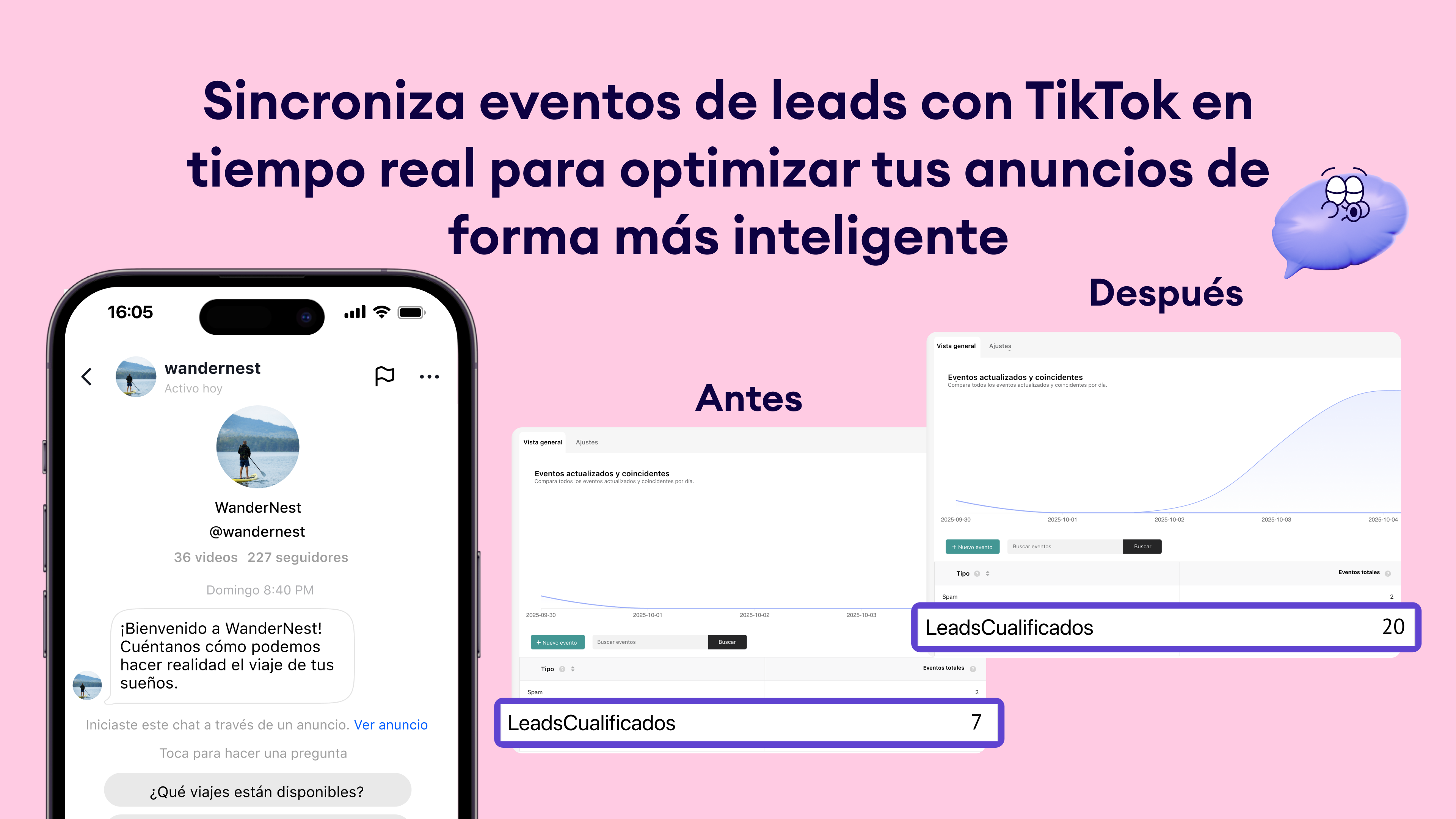Con los event sets enviando información en tiempo real a TikTok y Kommo automatizando cada seguimiento, los equipos logran convertir la interacción en conversaciones significativas más rápido que nunca.
