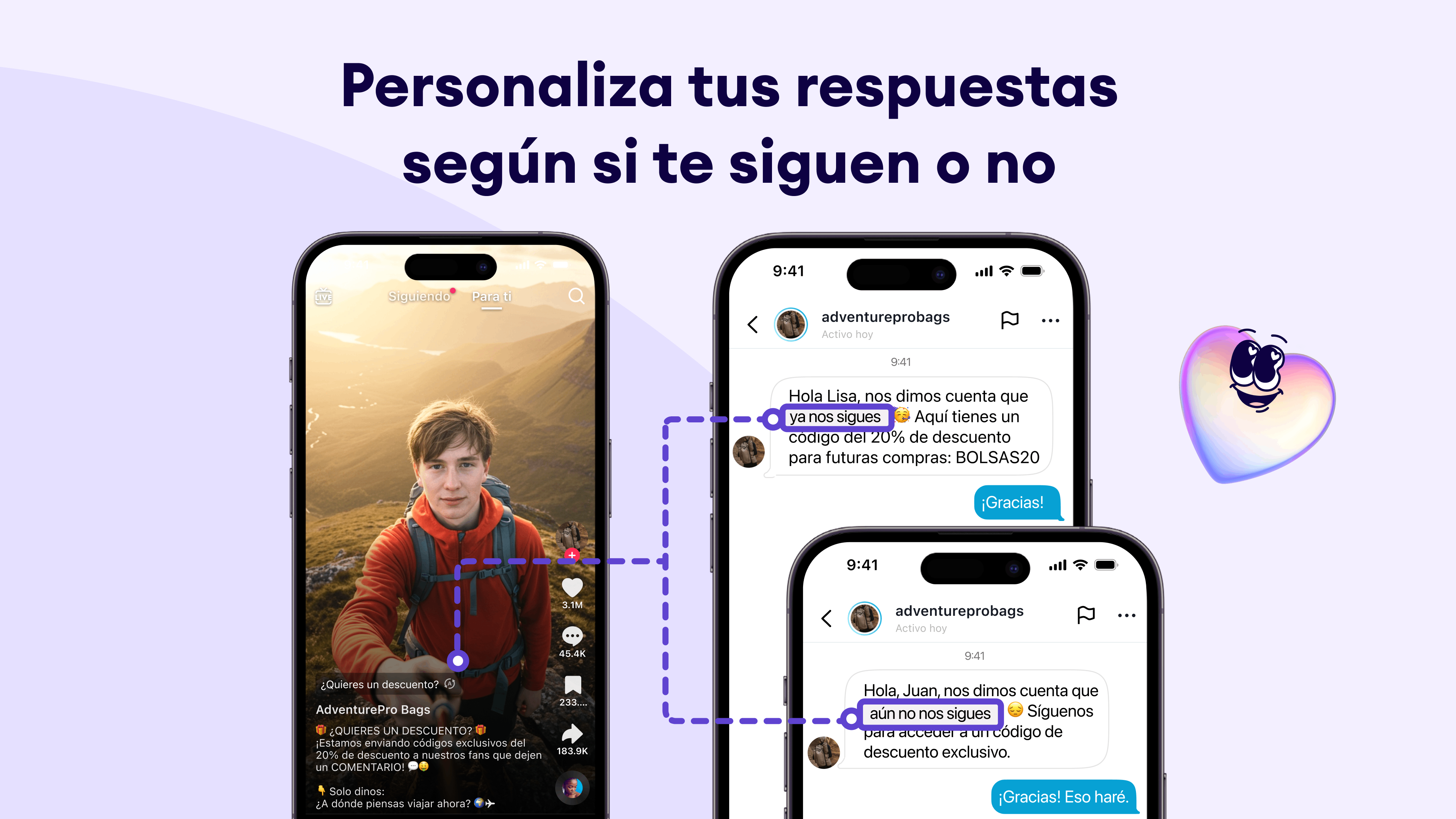 Respuestas específicas para anuncios: Envía automáticamente mensajes personalizados, como códigos de descuento u ofertas especiales, según el anuncio de TikTok al que respondió el usuario.