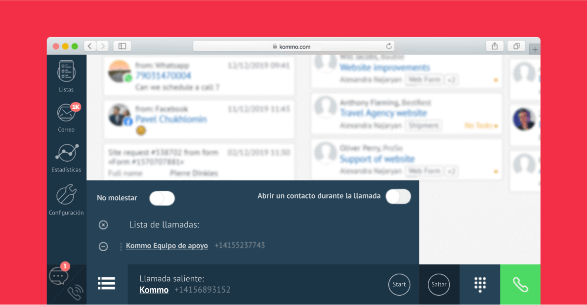 Con Kommo, los usuarios de Twilio obtienen una solución que le permite configurar todo el proceso de ventas y marketing, lo que le permite aumentar las ventas con sus numerosas funciones y automatizaciones. Agregar Twilio en Kommo le permitirá sacar más provecho de su comunicación telefónica y aumentar su eficiencia.