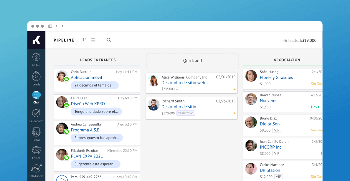 Kommo es el primer CRM de ventas basado en Messenger del mundo. Sus funciones de mensajería lo ayudan a crear el proceso de ventas y marketing perfecto, lo que resulta en más ventas y clientes leales con su enfoque innovador para la gestión de clientes.