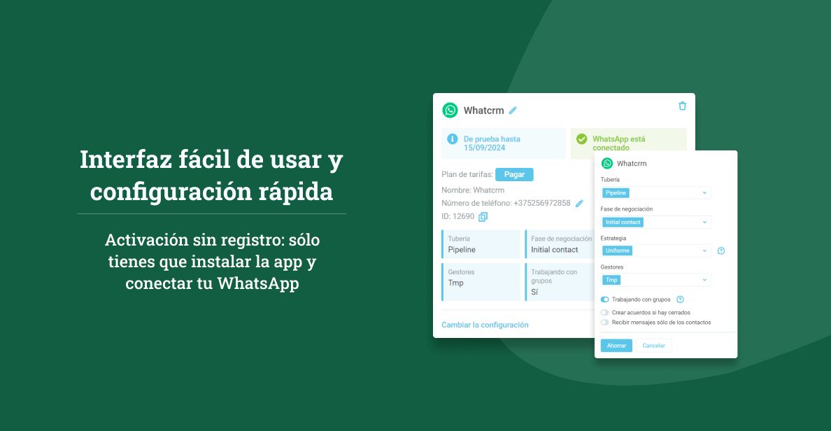 Kommo y WhatsApp por WhatCRM y Telphin funcionan muy bien juntos porque combinan herramientas CRM fuertes con funciones fluidas de WhatsApp. Esto hace que todo sea más eficiente al crear acuerdos automáticamente, sincronizar mensajes y ofrecerte una vista completa de las interacciones con tus clientes. Ahorra tiempo, reduce el trabajo manual y te ayuda a responder más rápido.