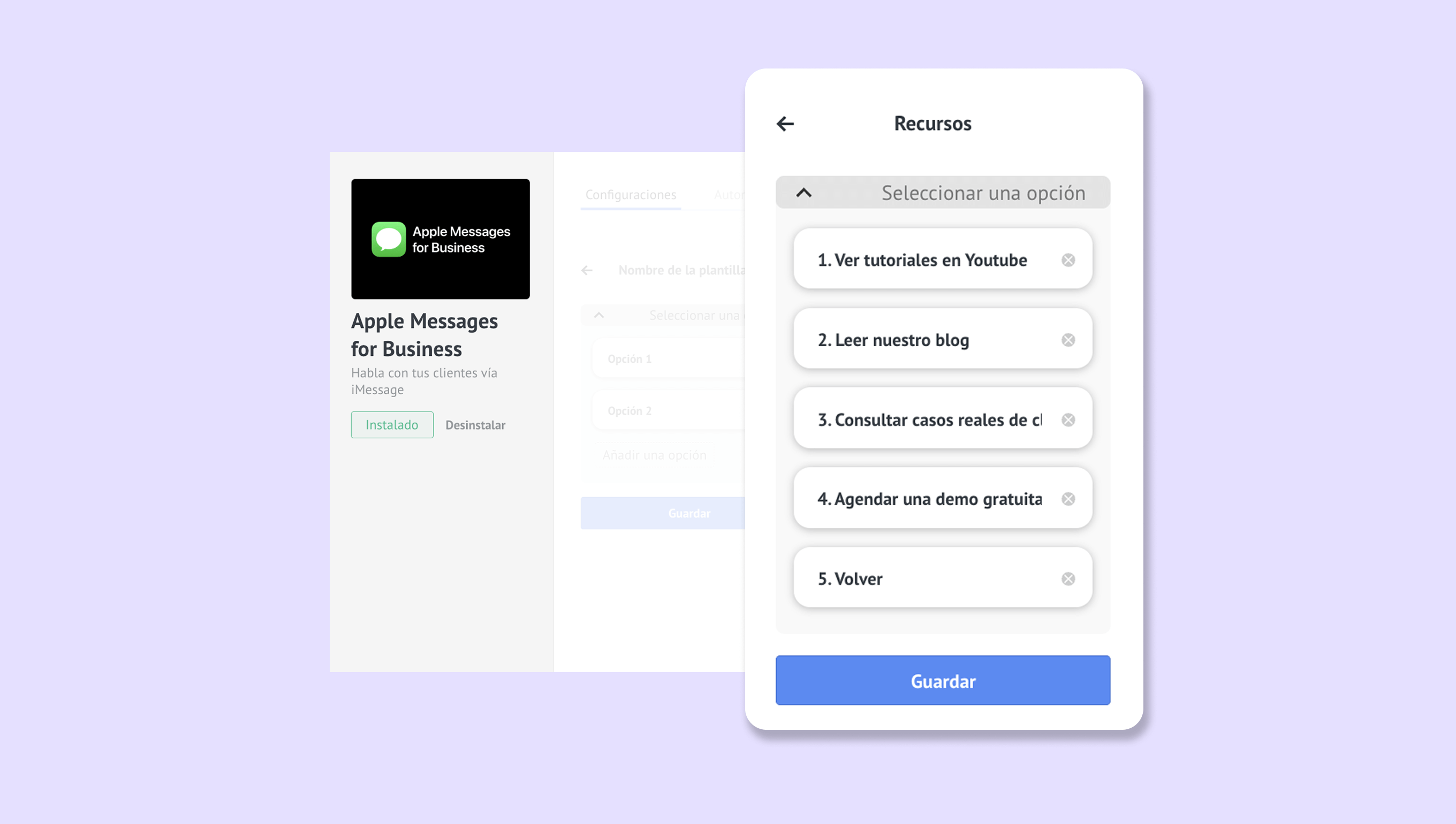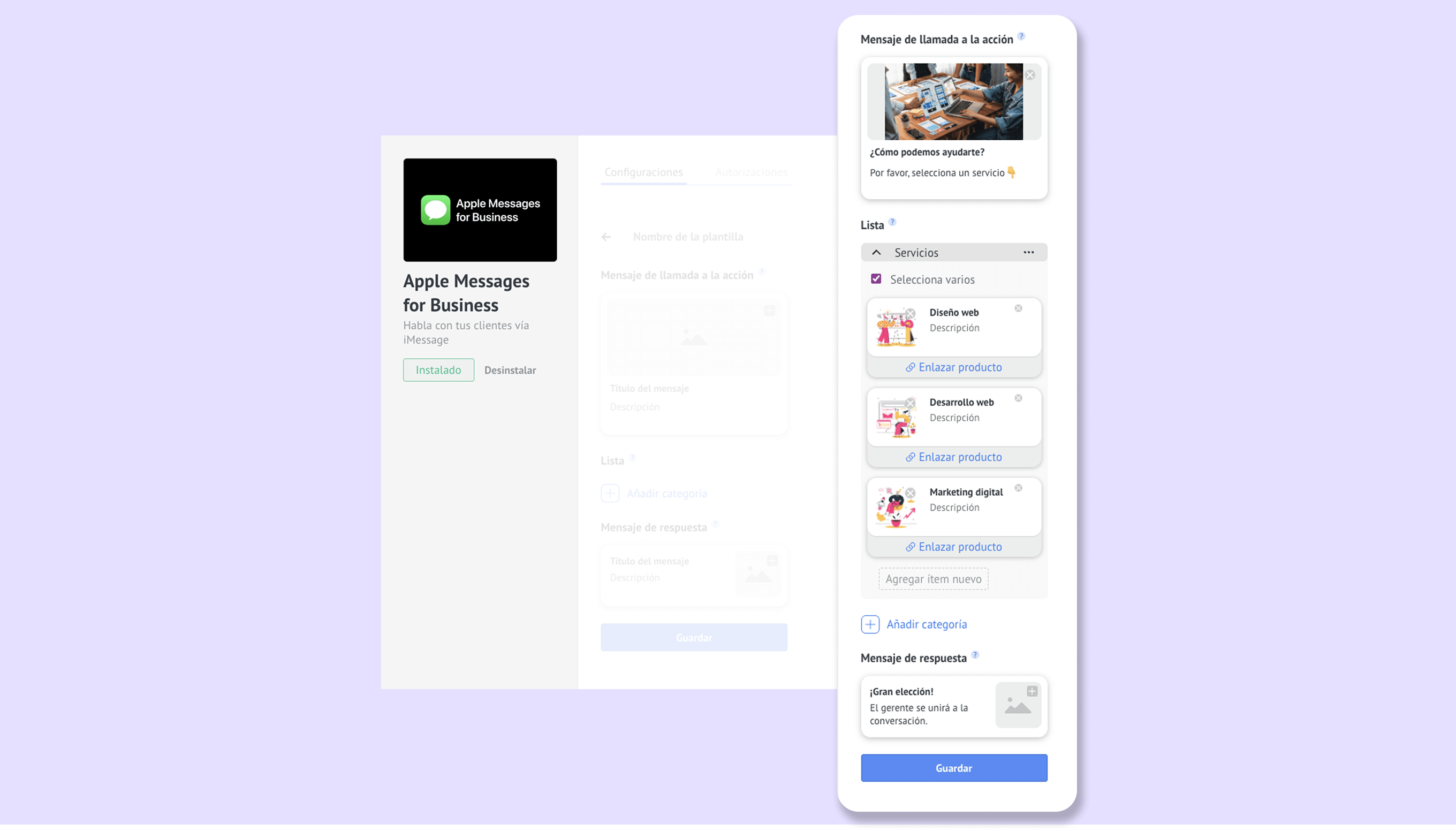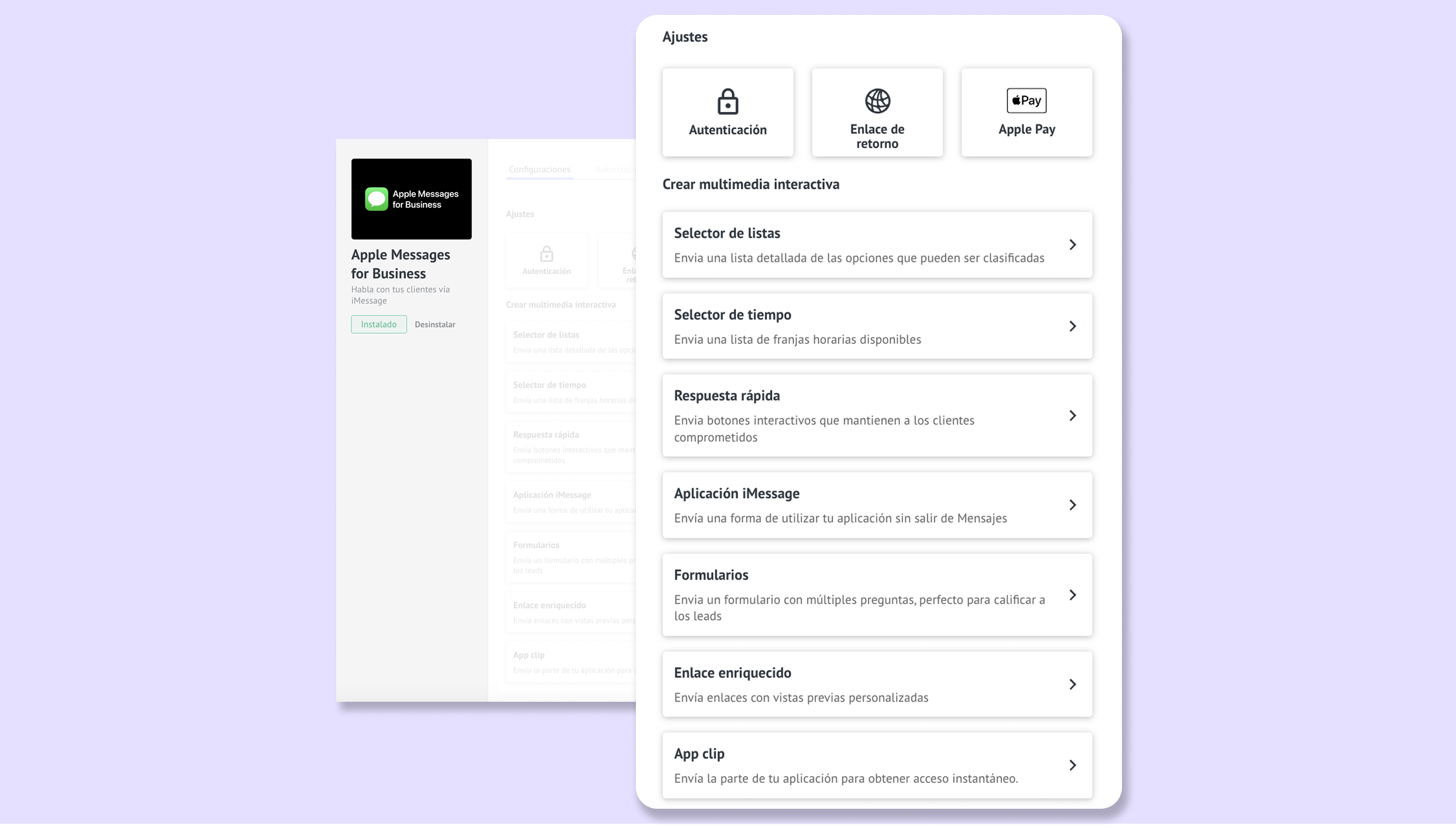 Veamos cómo puedes configurar cada una de las funciones en la integración de Apple Messages for Business.