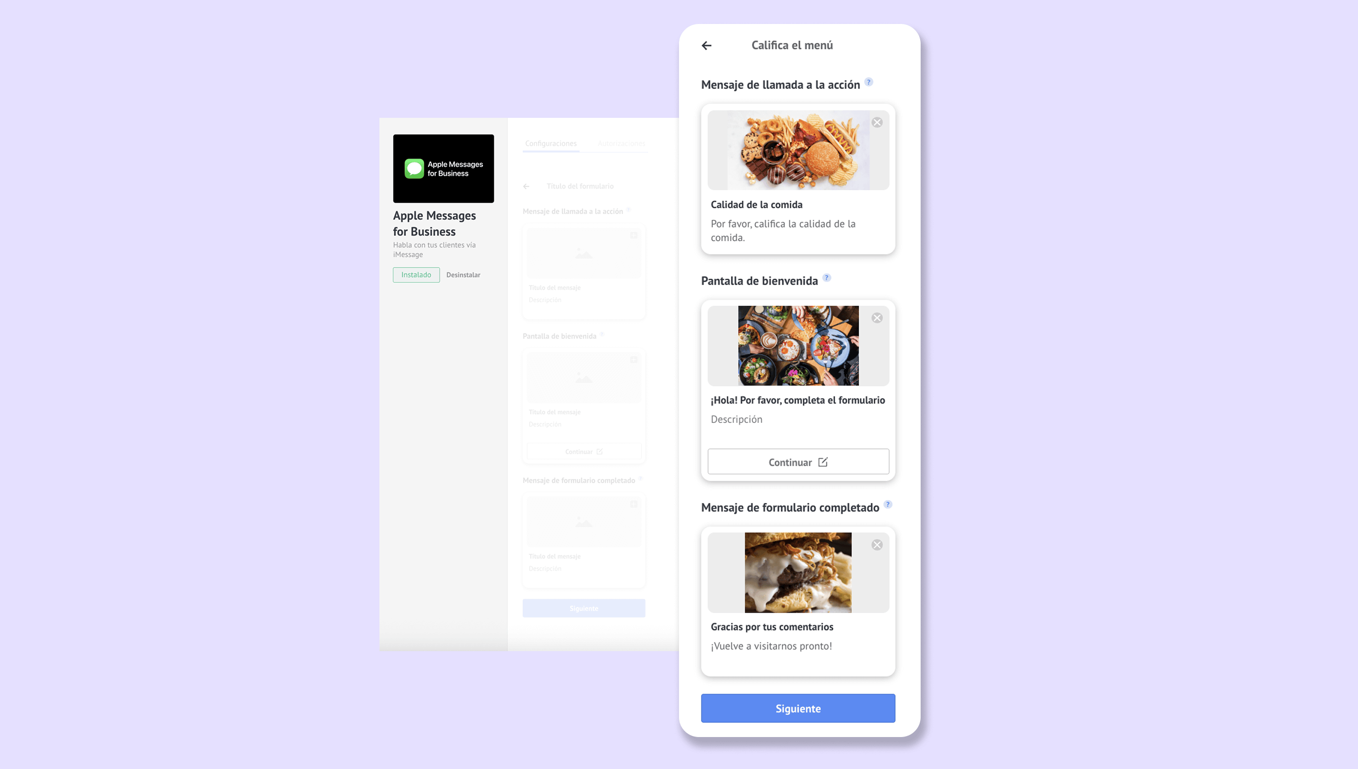 Puedes crear formularios que pueden utilizarse sin salir de la aplicación de mensajería. Utilízalos para flujos de clasificación, encuestas de satisfacción del cliente y para la creación de cuentas o registros de servicios.