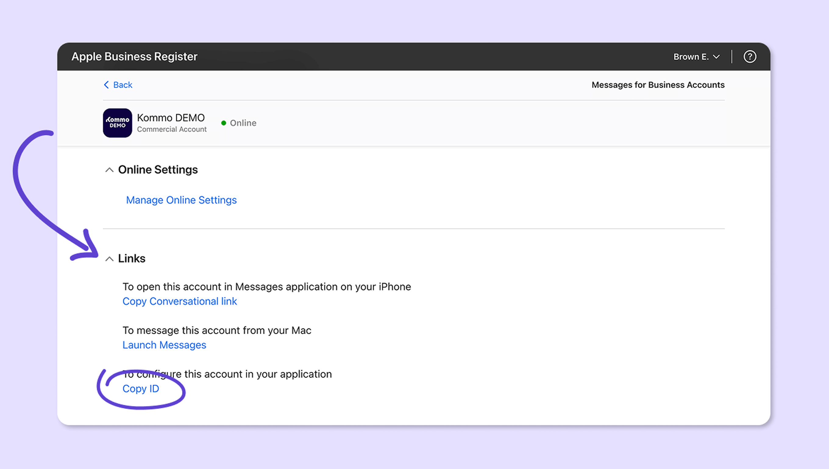 Ve a tu cuenta de Apple Messages for Business.