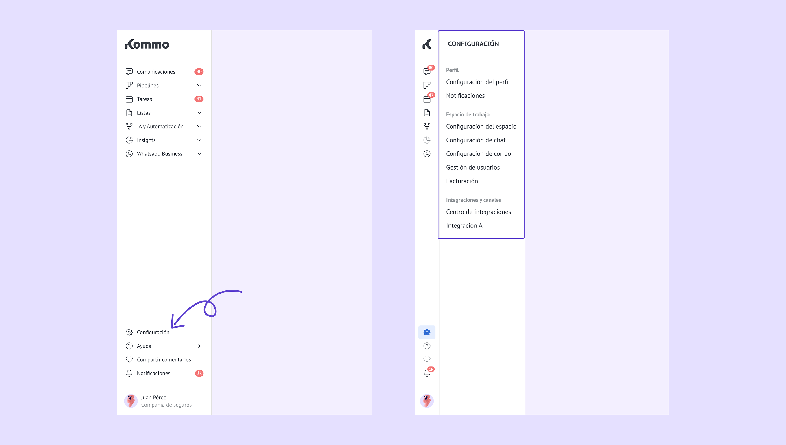 Configuración de correo – configura y gestiona la sincronización de correo con tu cuenta de Kommo. -