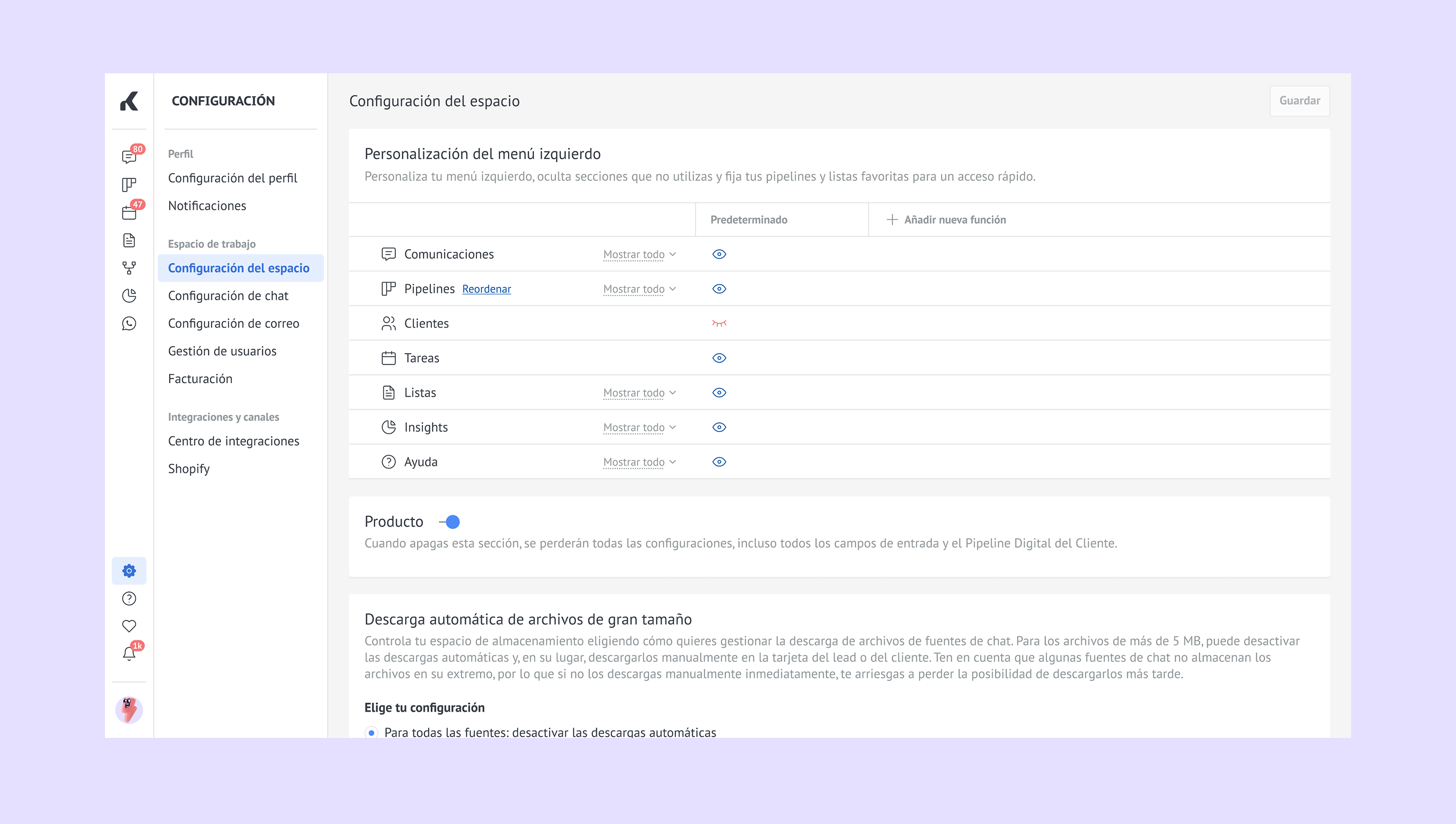 Configuración del espacio (antes Ajustes generales) – personaliza tu espacio de trabajo según las necesidades de tu equipo. -