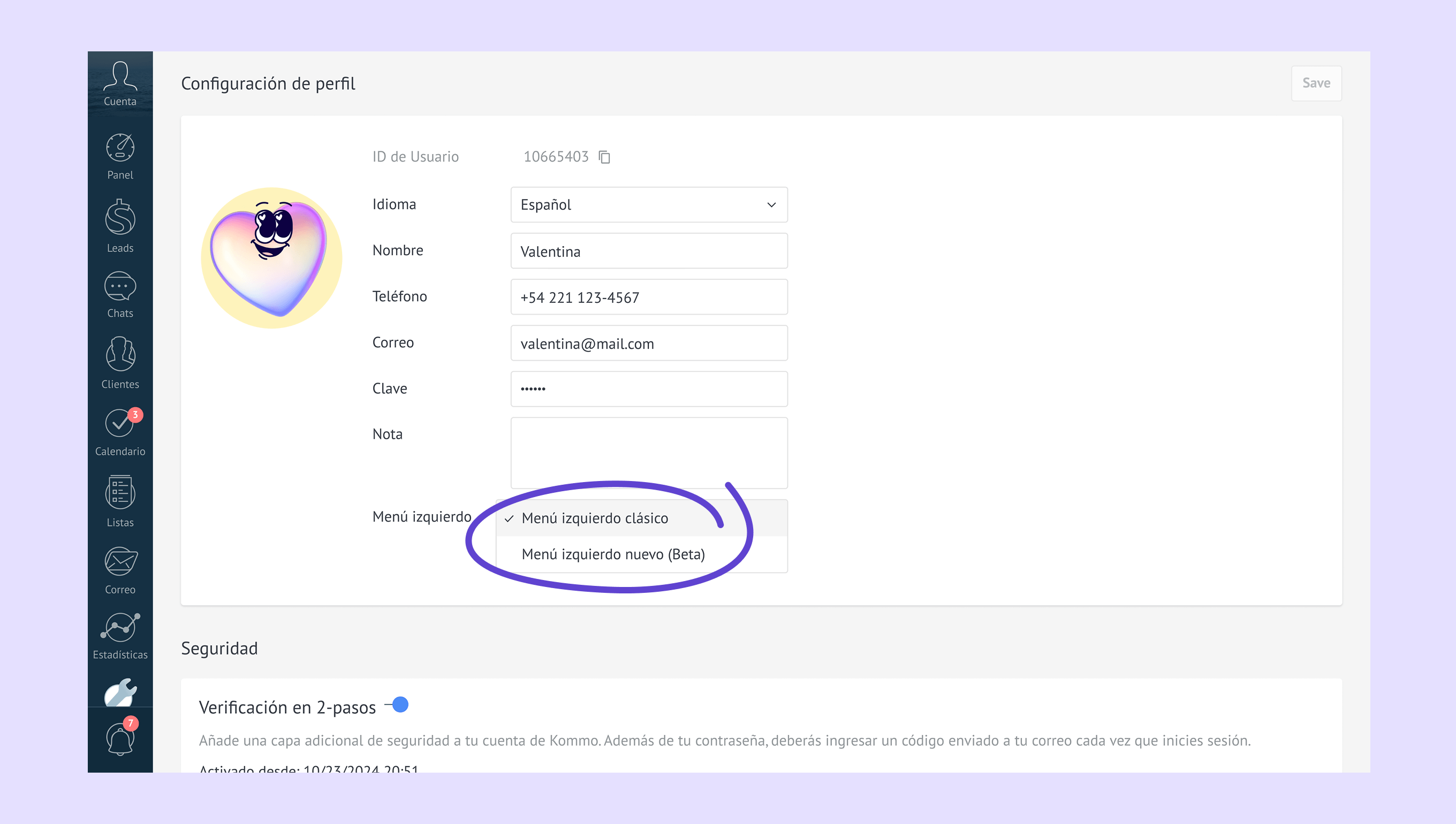 Cambia el campo Menú izquierdo a Menú izquierdo nuevo (Beta) y haz clic en Guardar.