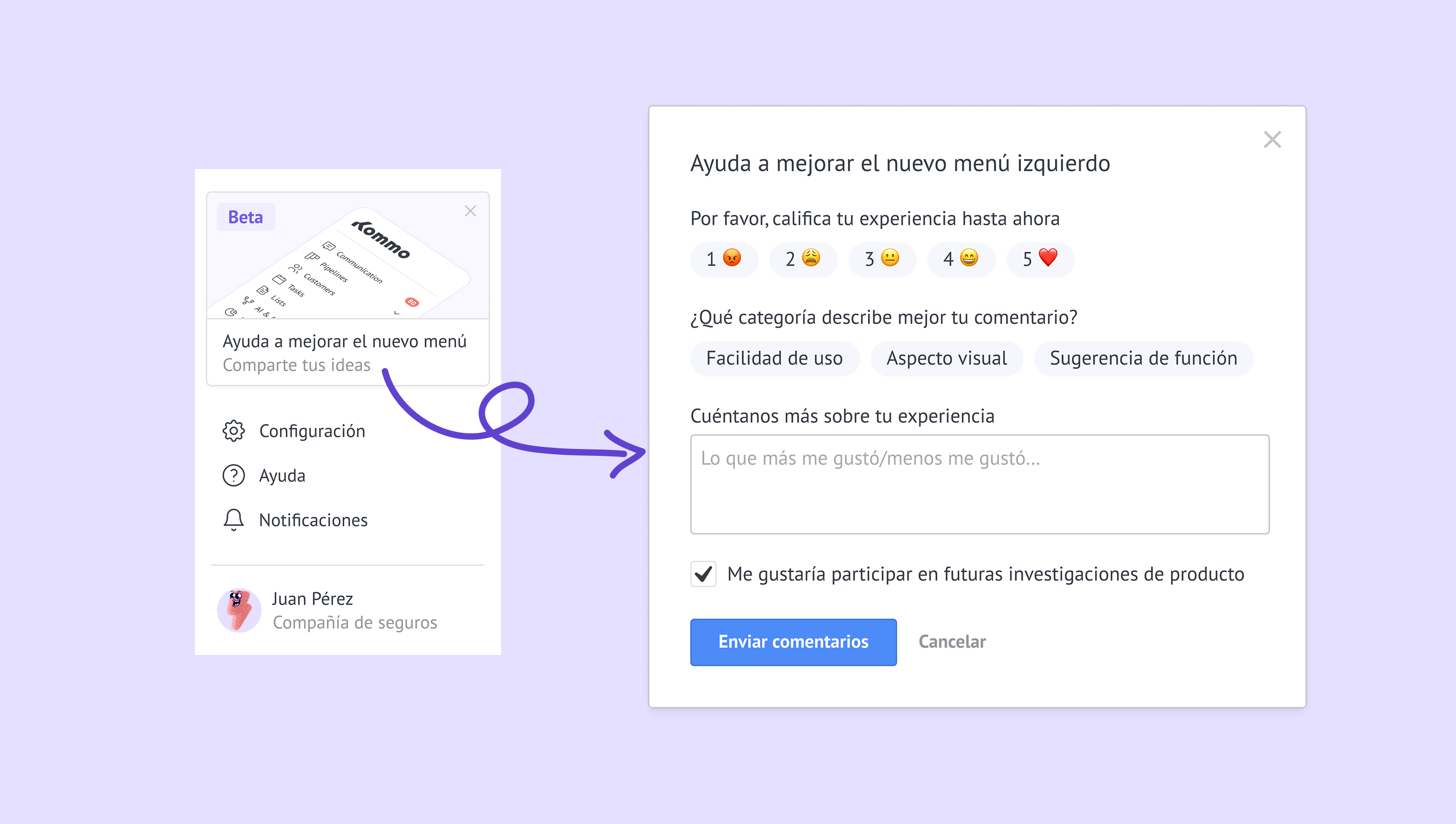 Diseño desplegable – Expande el menú para ver más detalles o mantenlo compacto para maximizar el espacio y reducir distracciones.