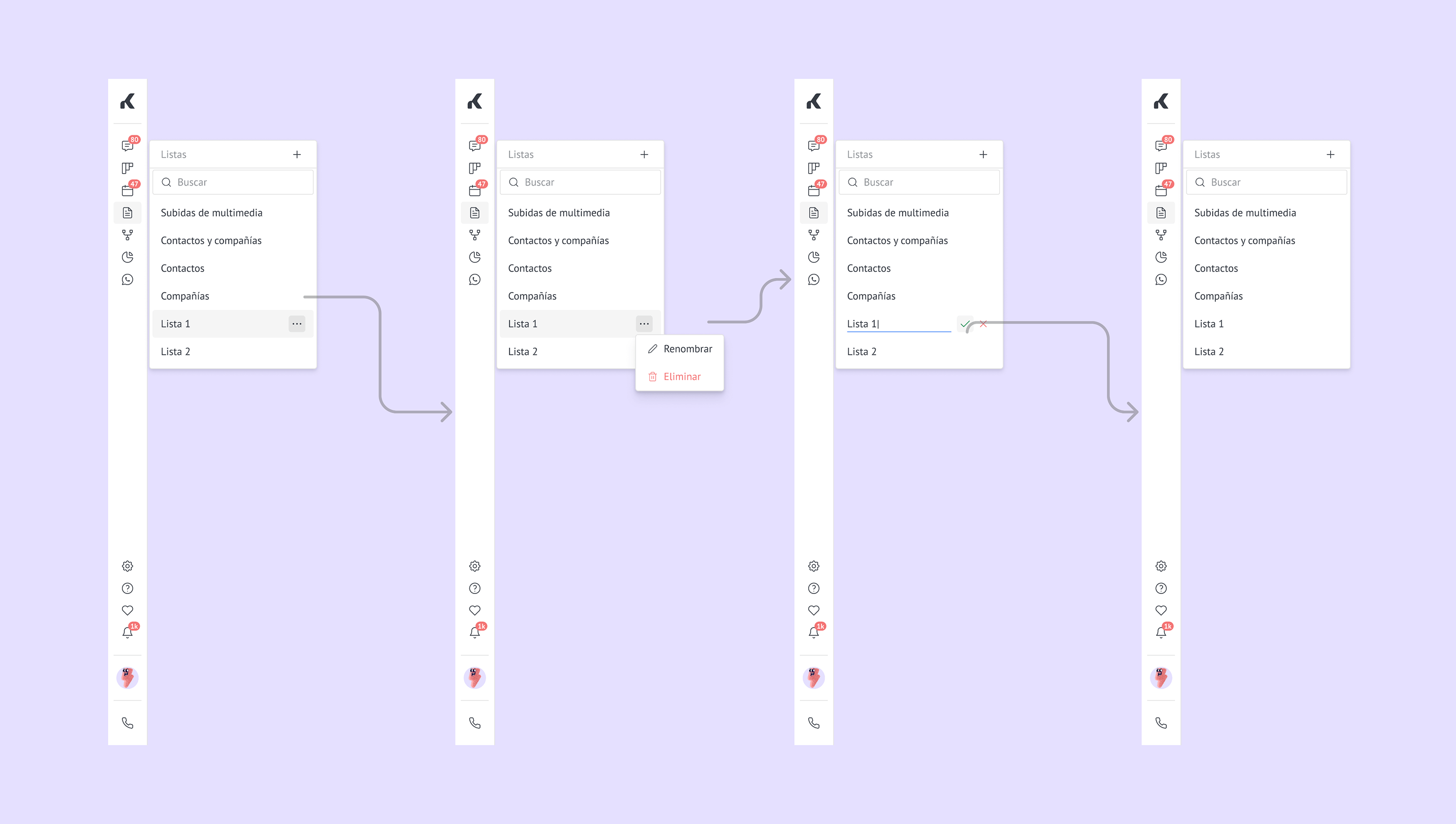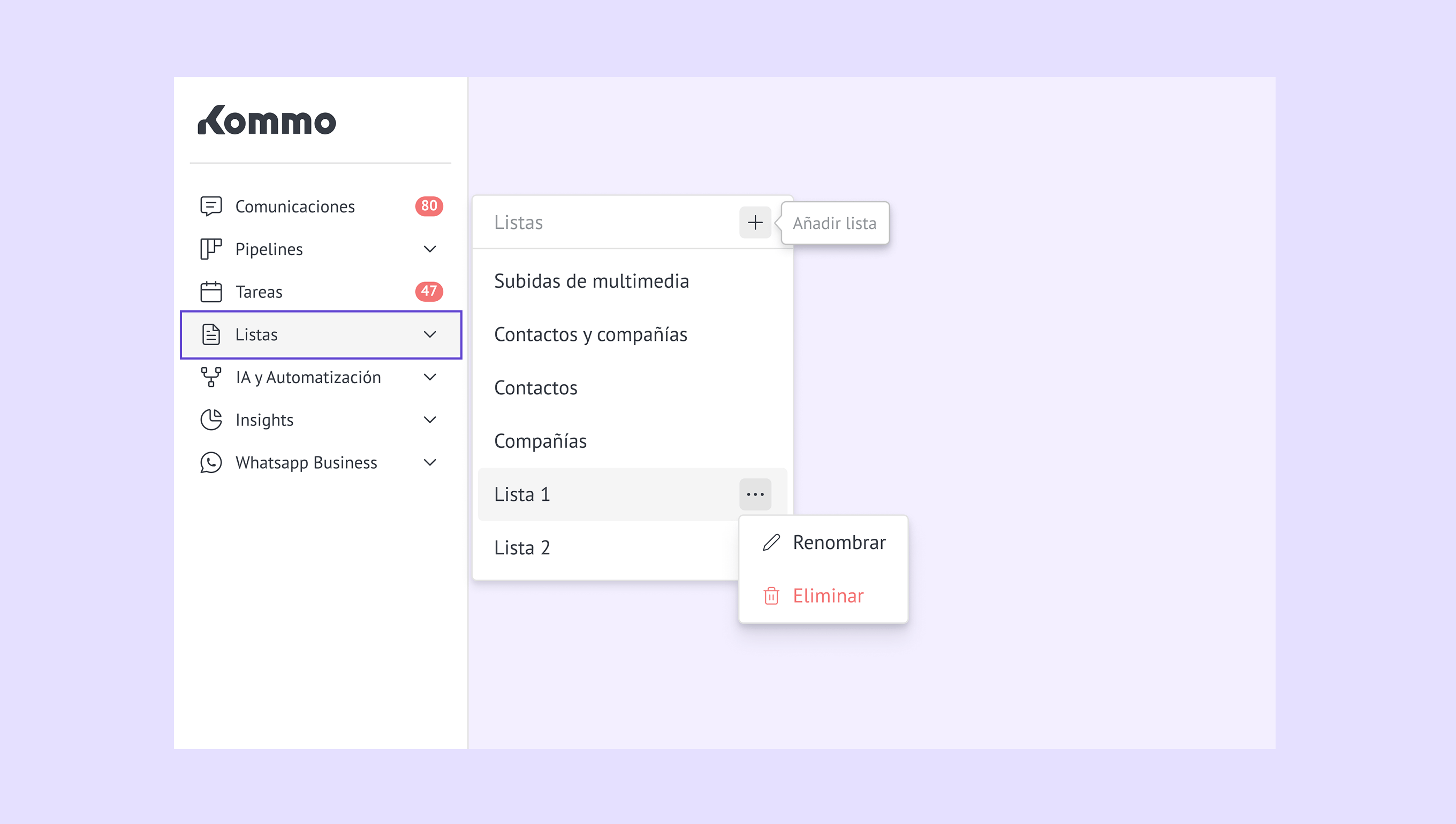 Renombra una lista – Pasa el cursor sobre cualquier nombre de lista y abre el menú … para actualizarla cuando lo necesites.