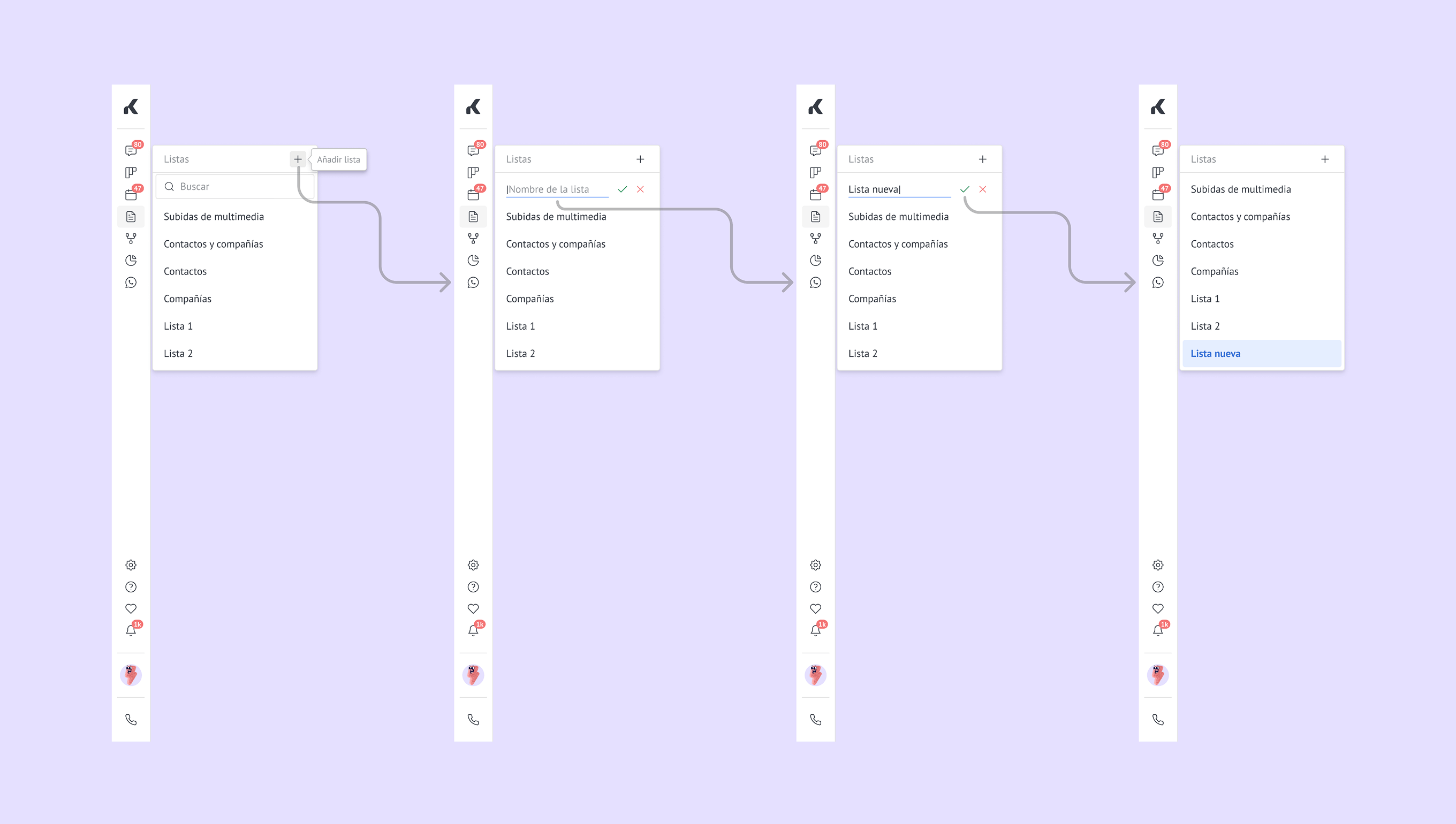 Añade una nueva lista – haz clic en el ícono + , selecciona el tipo de lista que deseas y asígnale un nombre.