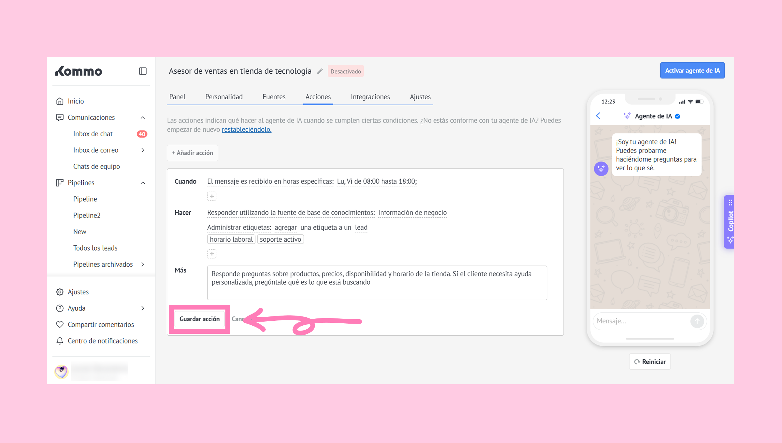 Para conocer más cómo configurar la personalidad del agente de IA, consulta nuestra guía.