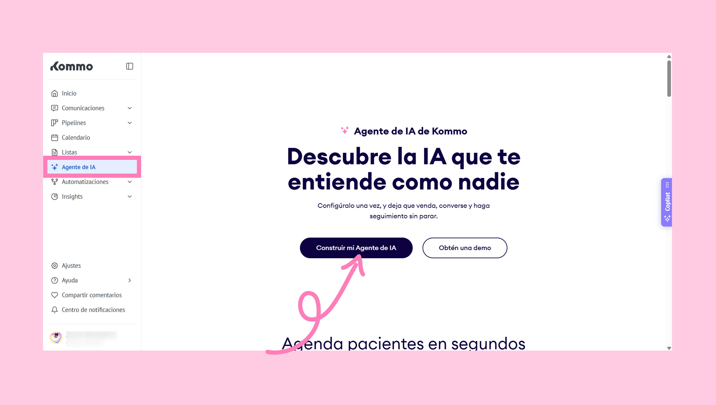 Nota: Si nunca creaste un agente de IA, haz clic en Construir mi agente de IA. Luego, sigue los pasos de nuestra guía para crearlo automáticamente.