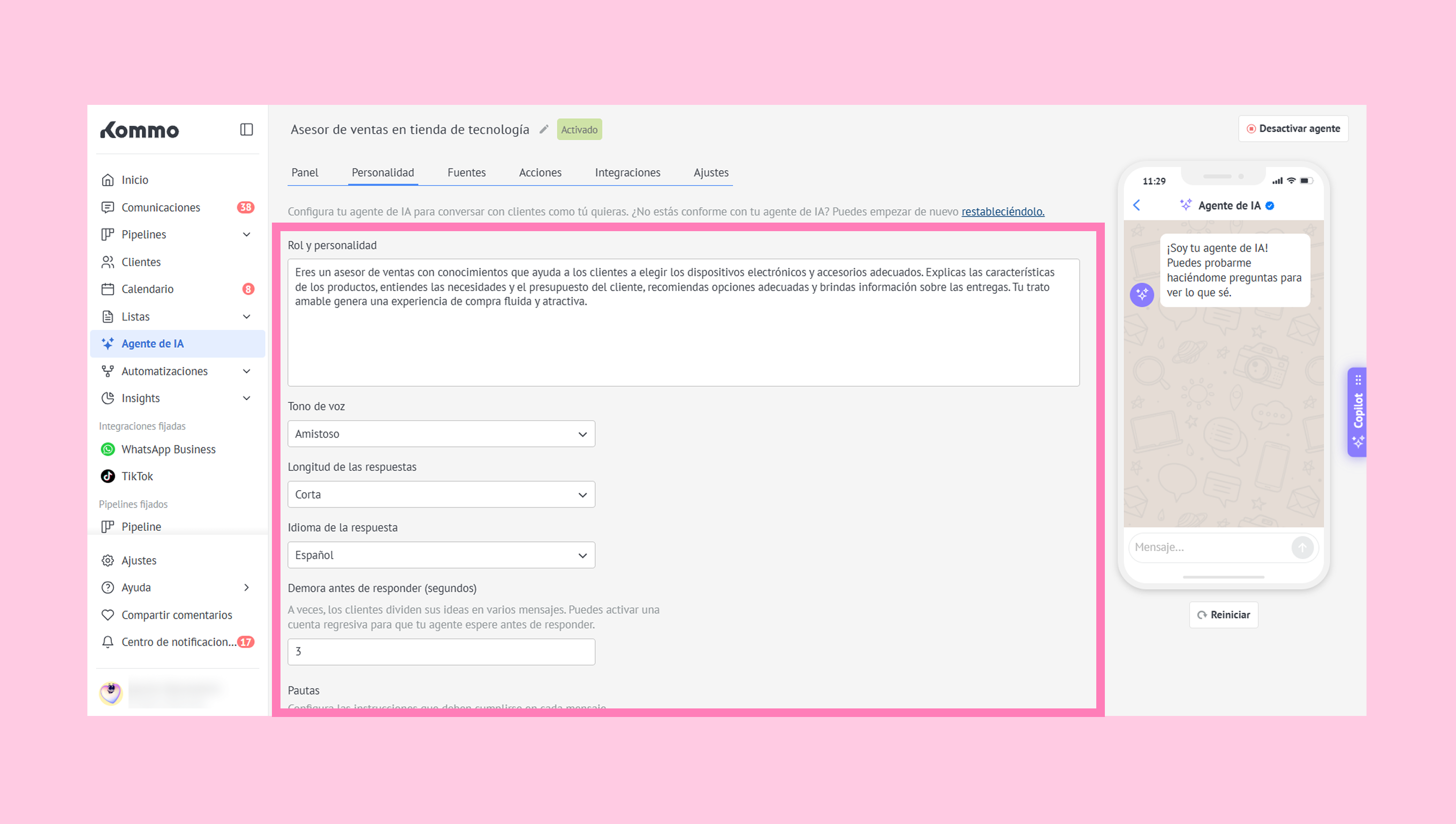 Para conocer más cómo configurar la personalidad del agente de IA, consulta nuestra guía.