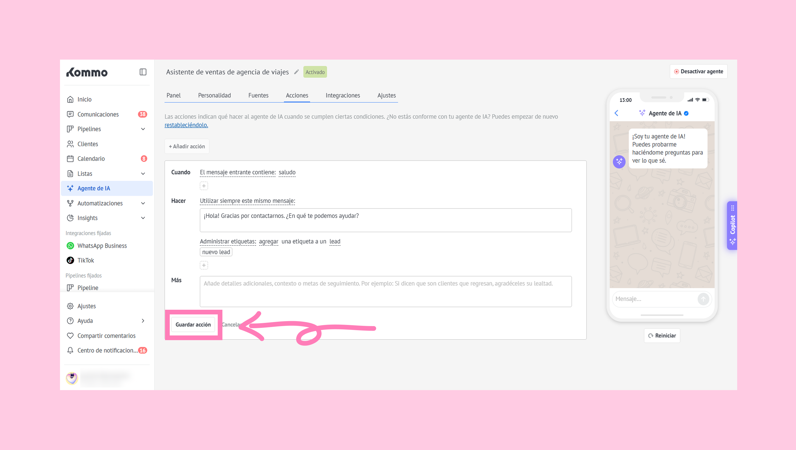 Para conocer más cómo configurar la personalidad del agente de IA, consulta nuestra guía.