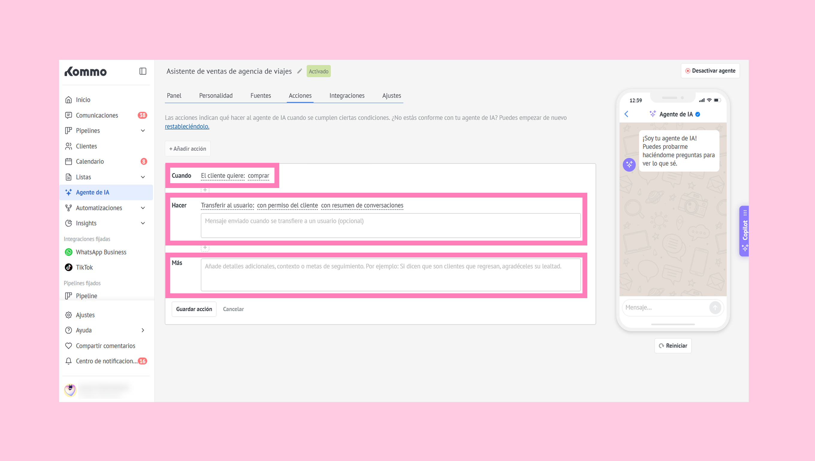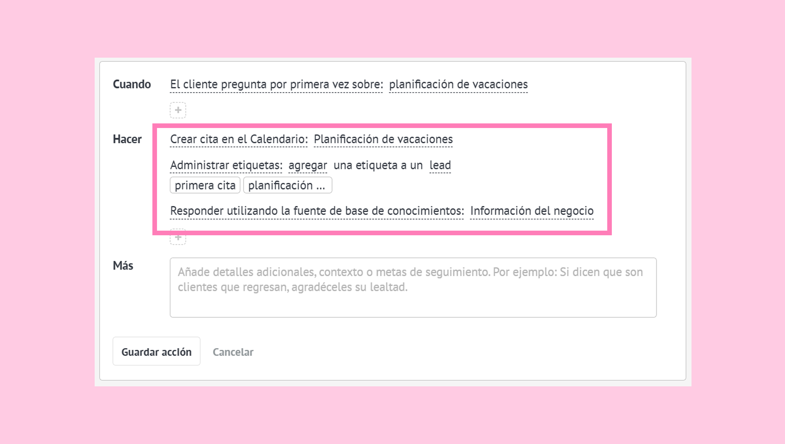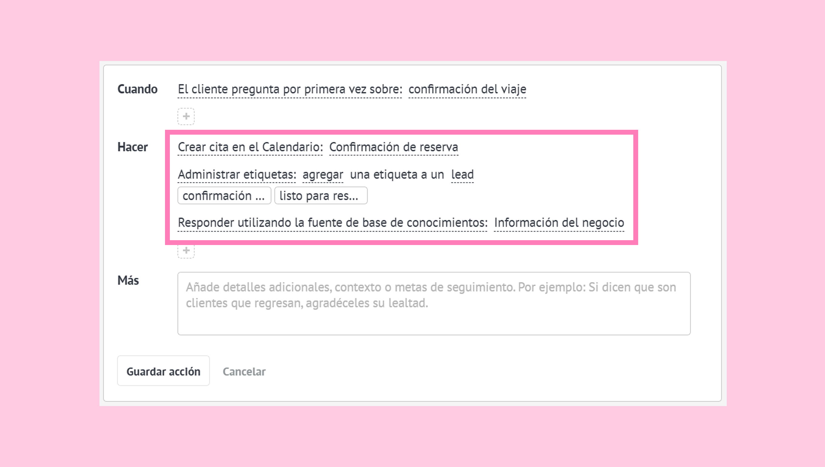 HACER - acciones que el agente de IA ejecutará cuando se cumplan las condiciones.