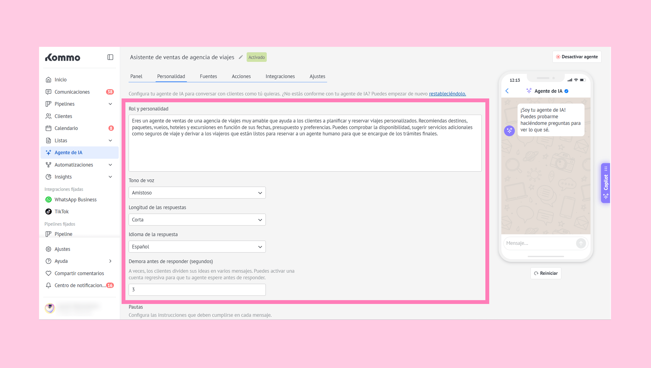 Para conocer más cómo configurar la personalidad del agente de IA, consulta nuestra guía.