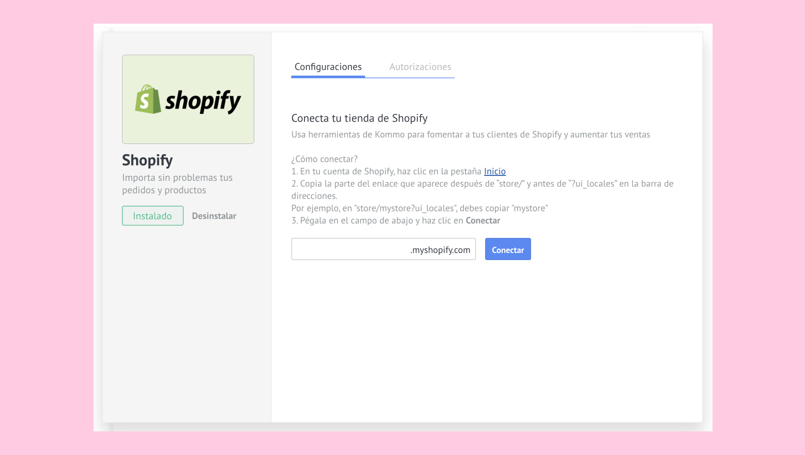 A continuación, te mostramos cómo configurar la integración usando Shopify como ejemplo: