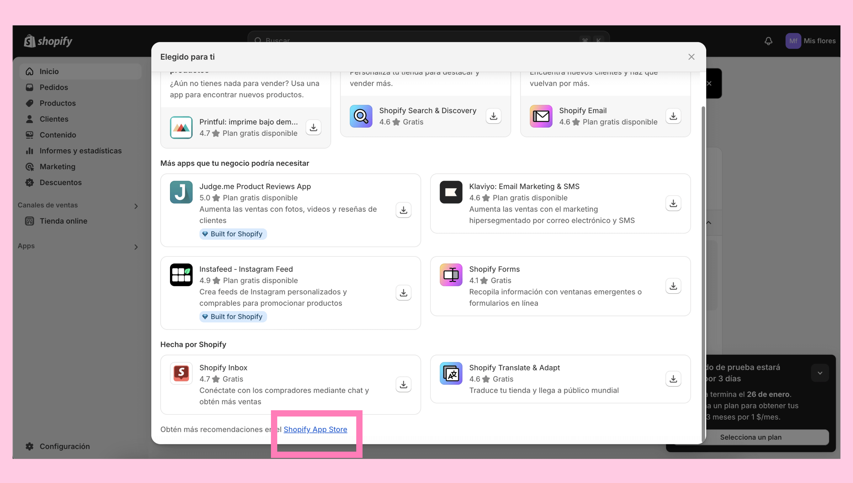 Abre Shopify. Ve a Aplicaciones > Shopify App Store.
