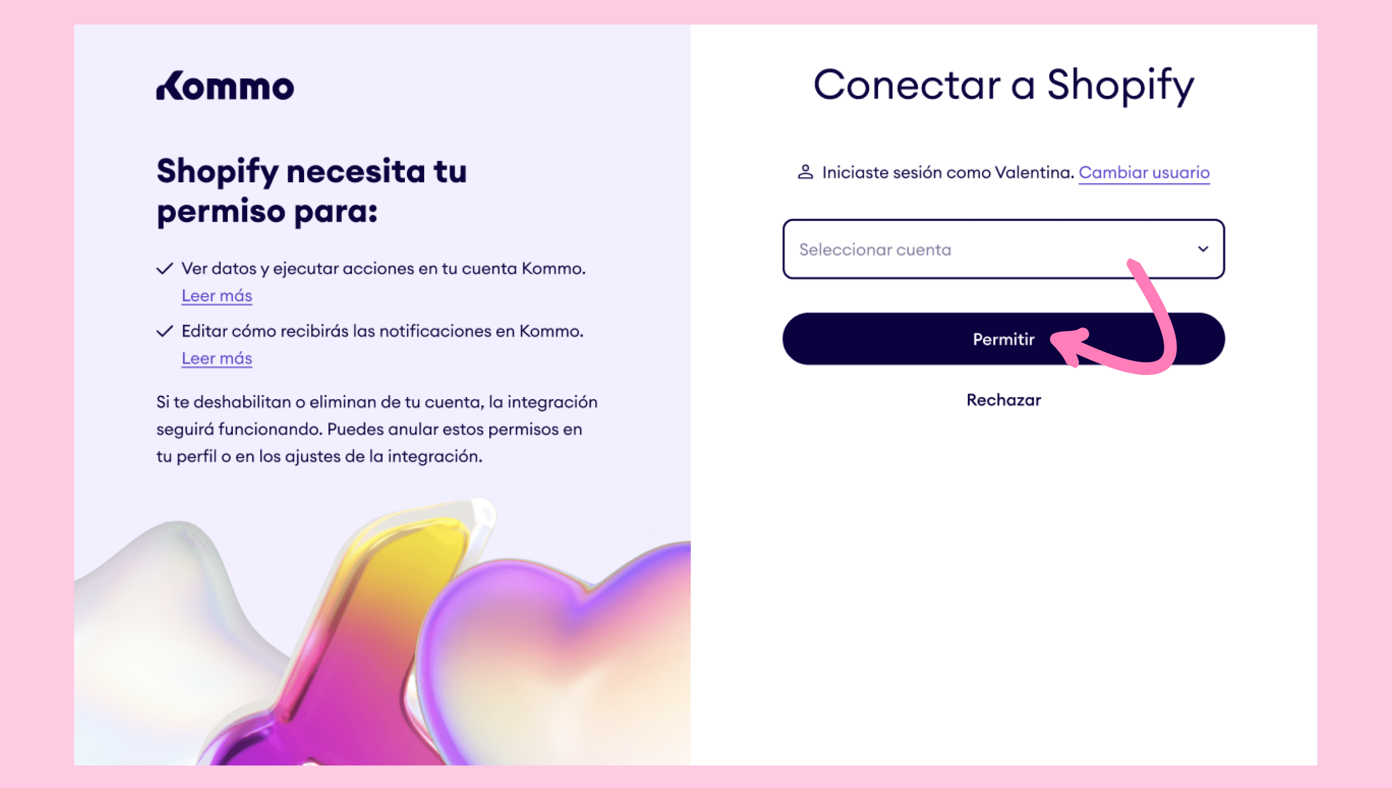 Inicia sesión en tu cuenta de Kommo y autoriza los permisos.