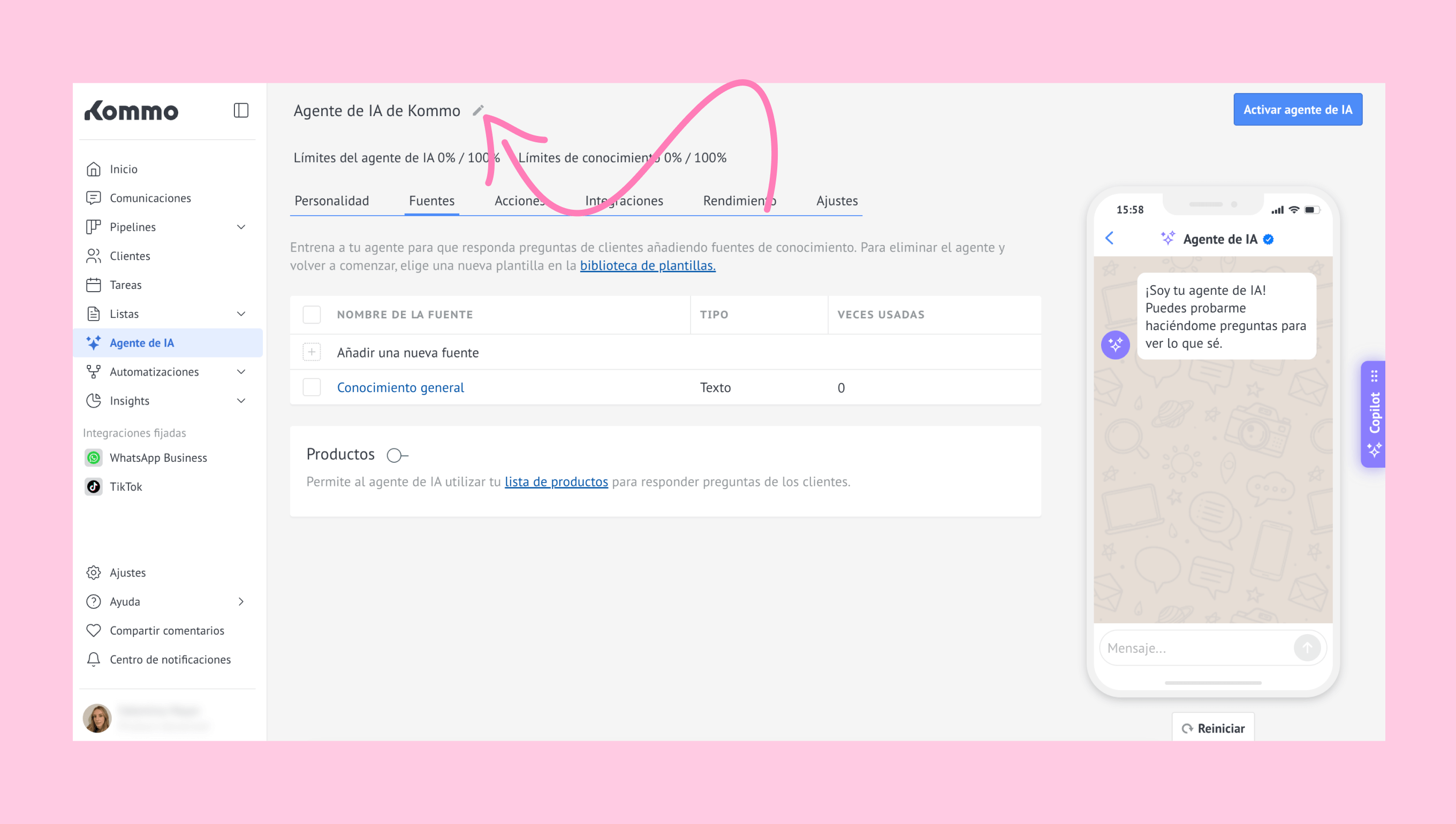 Ve a la sección Agente de IA.
