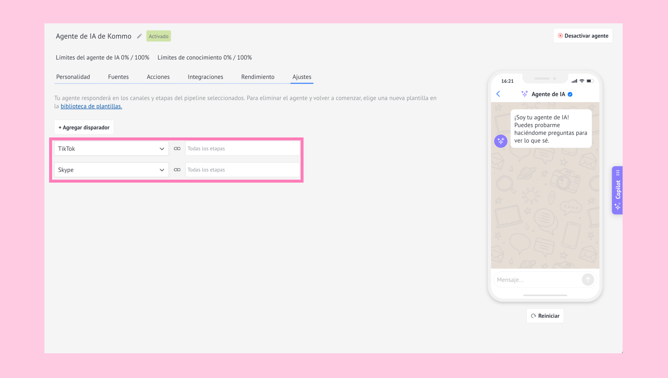 Para activar el agente de IA, sigue estos pasos: