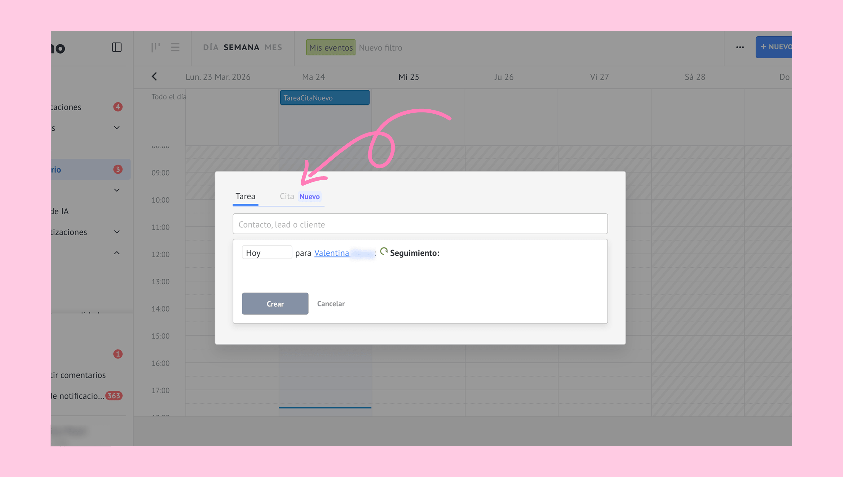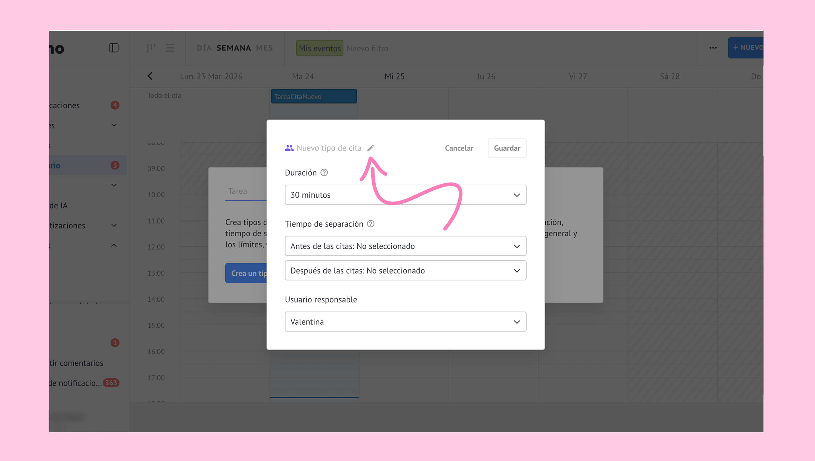 Haz clic en el ícono del lápiz junto a Nuevo tipo de cita e ingresa el nombre de la cita.