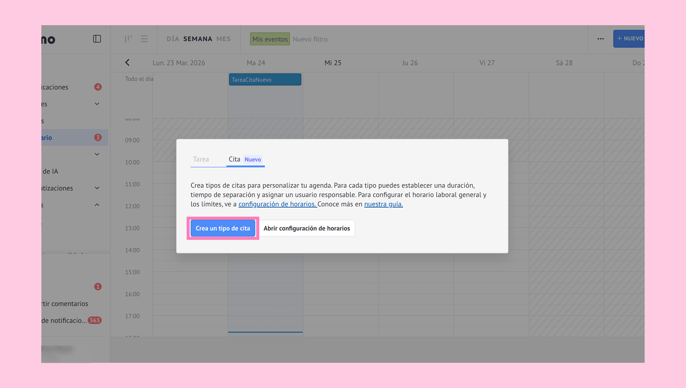 Configura tipos de cita