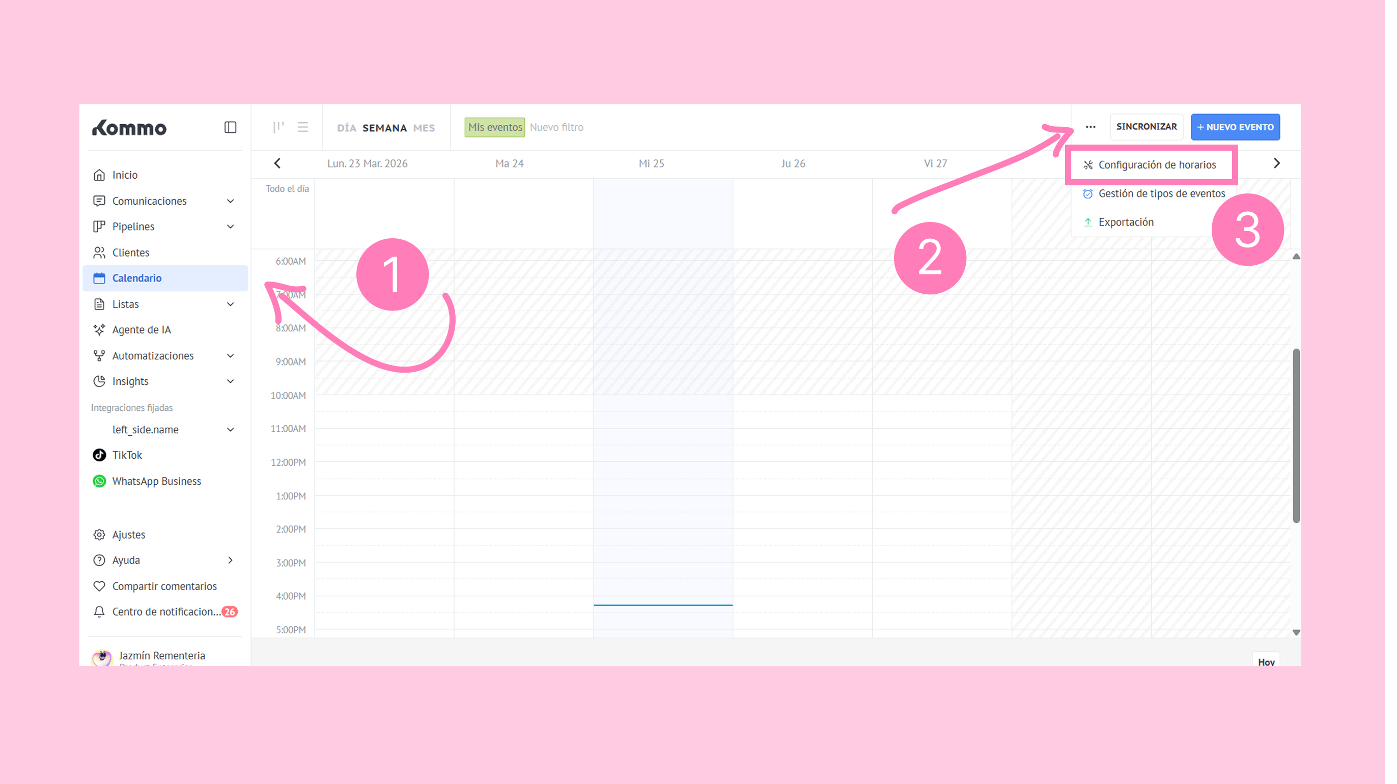 Para comenzar a programar citas en Kommo, deberás configurar: