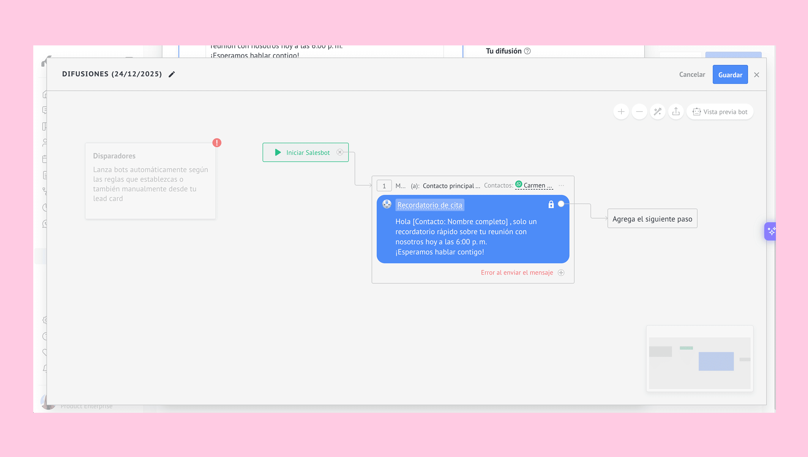 Nota: El mensaje original de la difusión no se puede editar en el editor de bots – vuelve a la pantalla de configuración si necesitas hacer cambios.