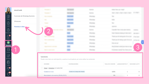 Puedes ajustar los disparadores del bot después de enviar la difusión, en WhatsApp > Plantillas & Bots > Salesbots.