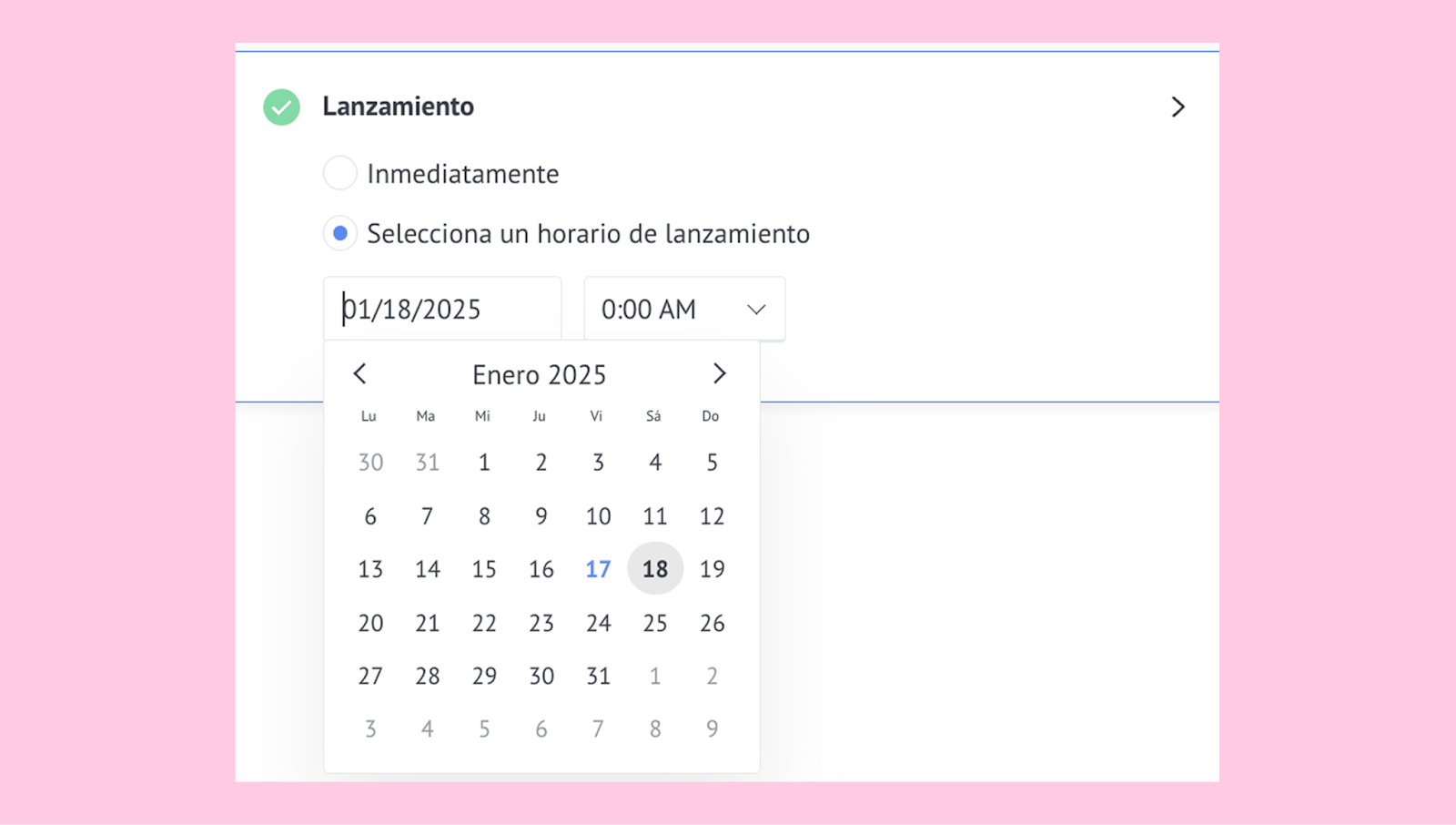 Programar o enviar inmediatamente (sección Lanzamiento)