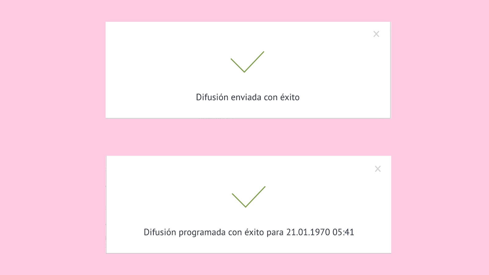 Esto puede generar una ligera diferencia entre la cantidad de leads seleccionados en el campo Destinatarios y las estadísticas finales de entrega en la página de Difusión. Estamos trabajando para que coincidan con mayor precisión.