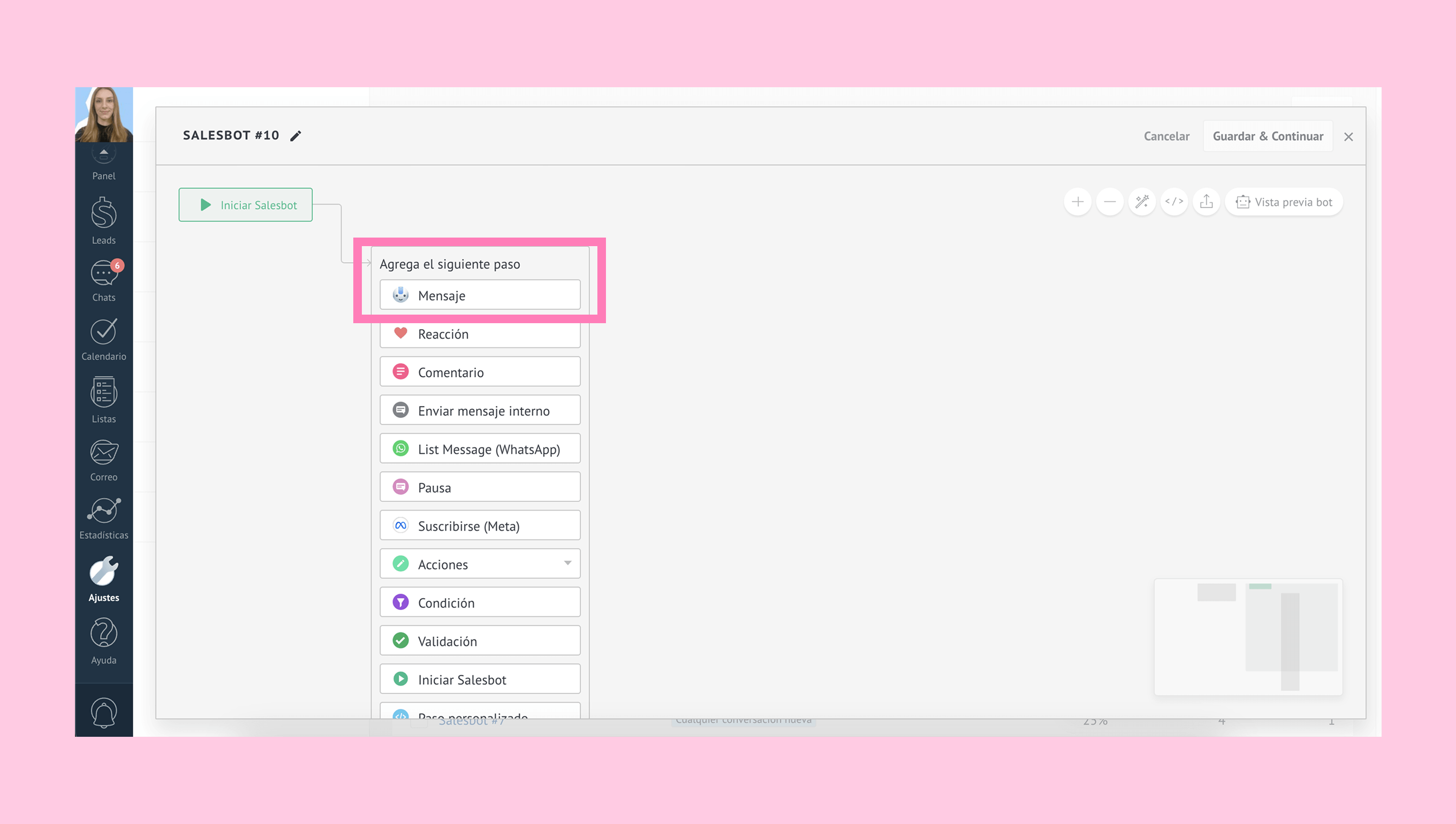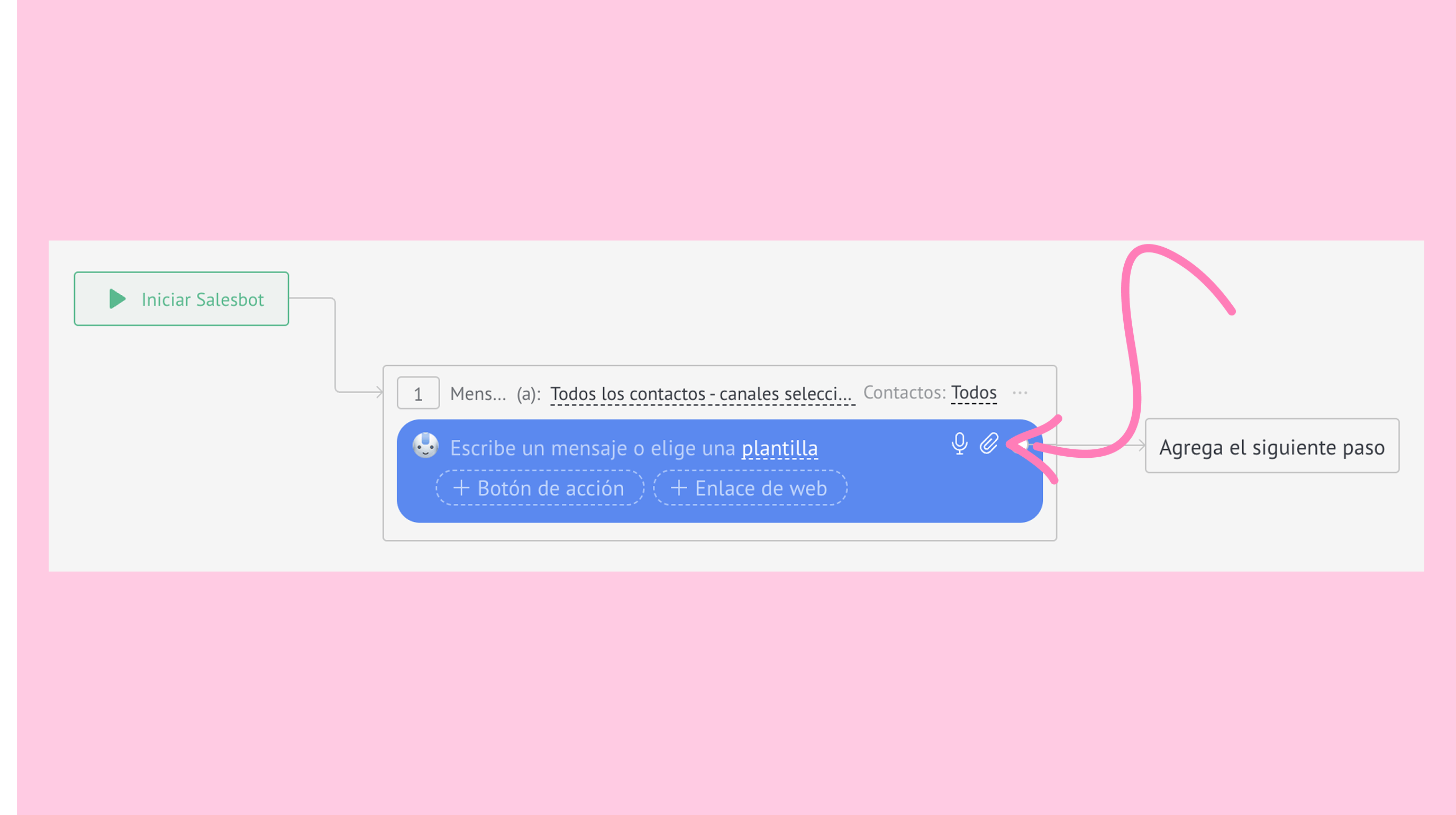 1. En el constructor del Salesbot, selecciona el paso Mensaje.