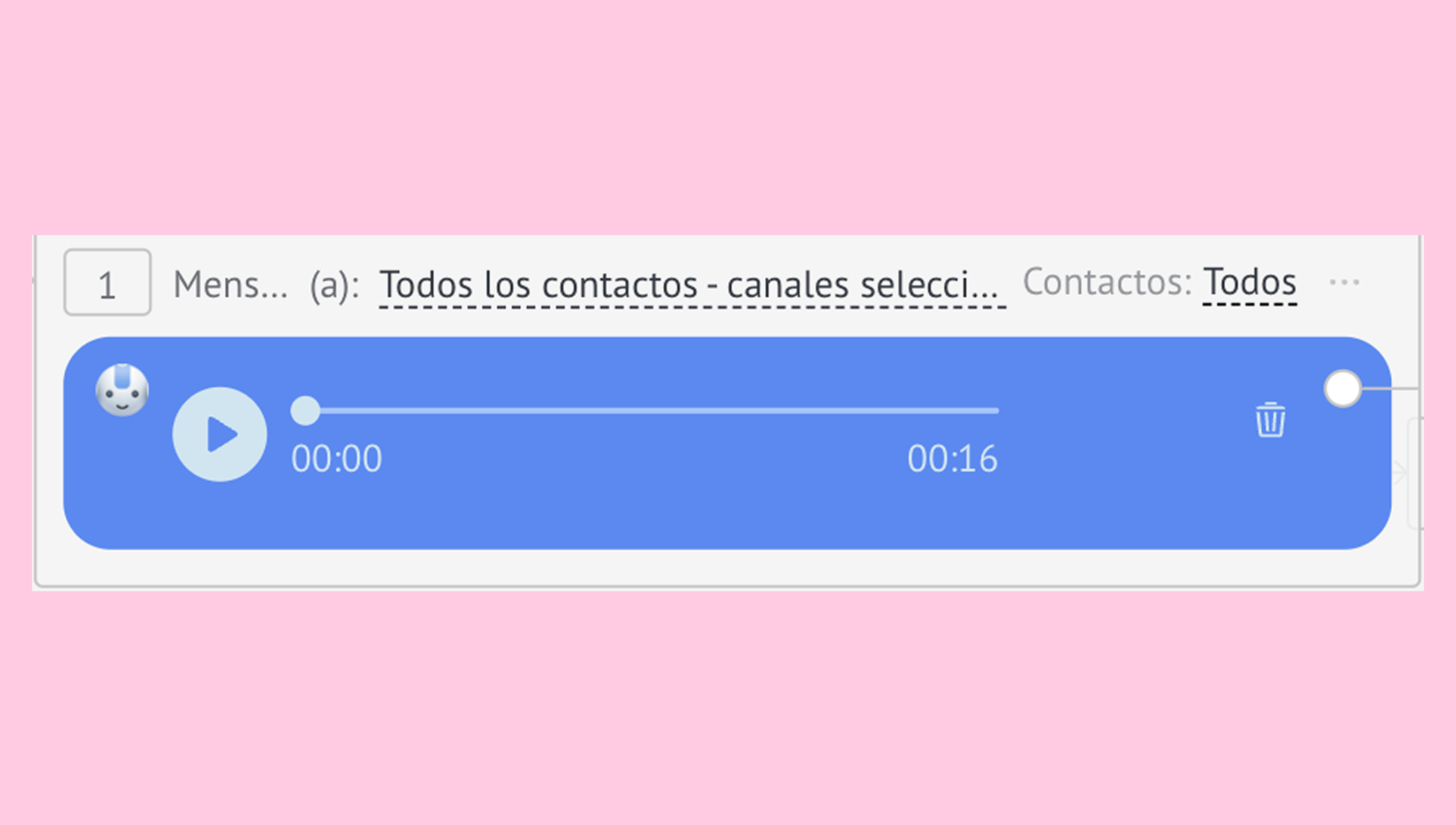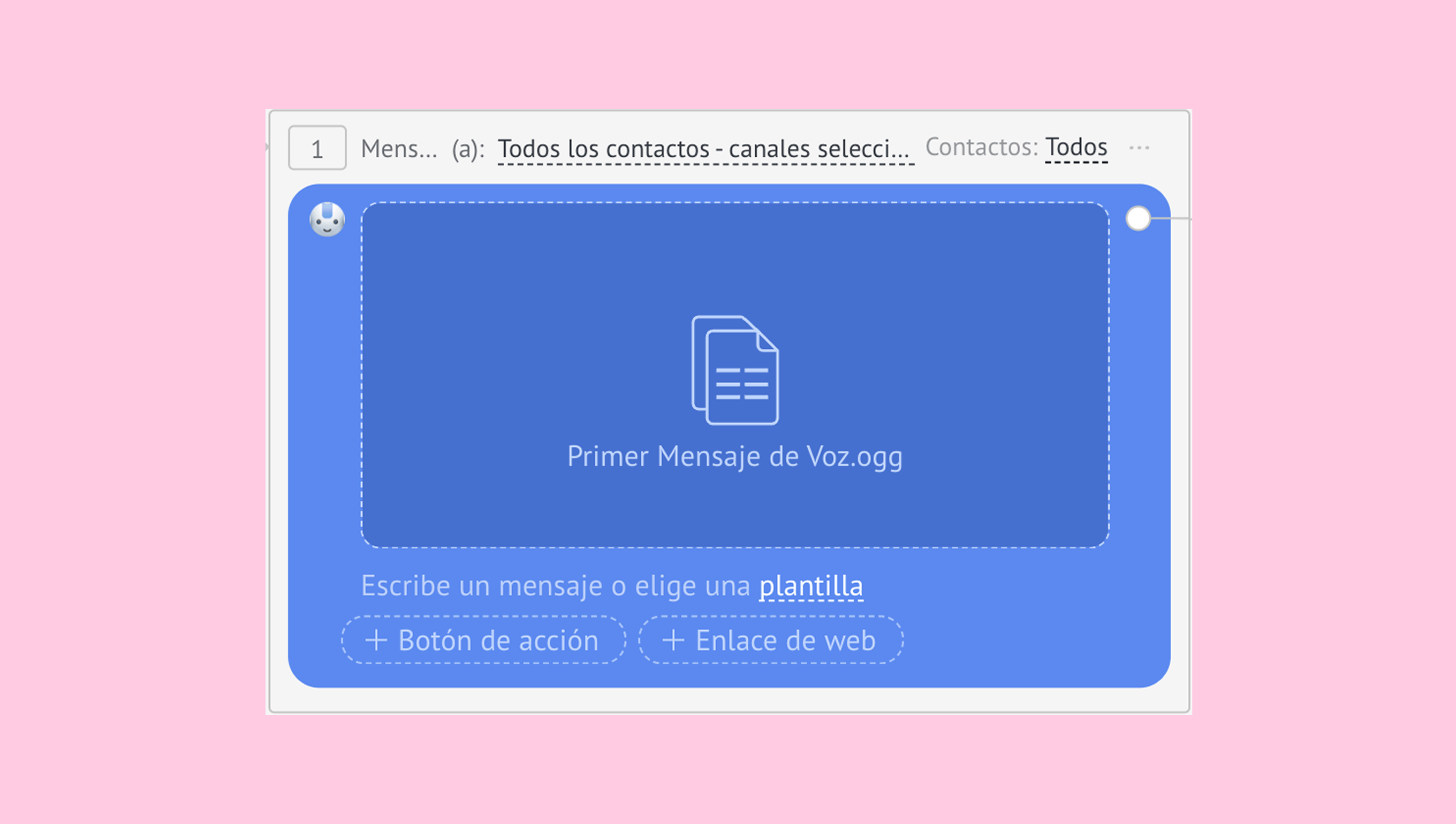 El Salesbot te permite enviar mensajes de voz y archivos de audio, haciendo que las conversaciones automatizadas sean más dinámicas. Puedes grabar mensajes directamente en el bot o adjuntar archivos de audio existentes.