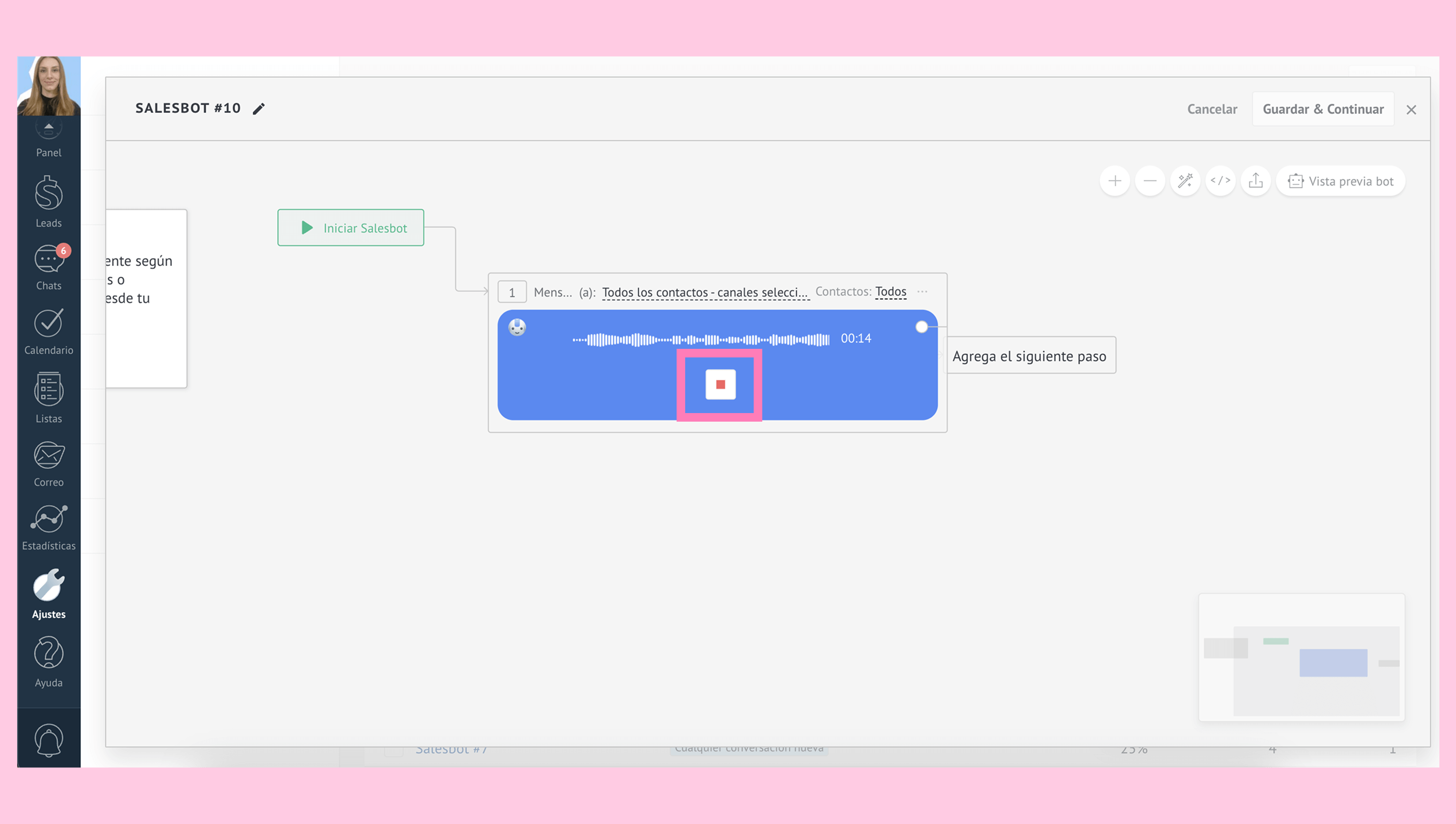 Para obtener una descripción completa de las funcionalidades de Salesbot, visita nuestra guía de Salesbot.