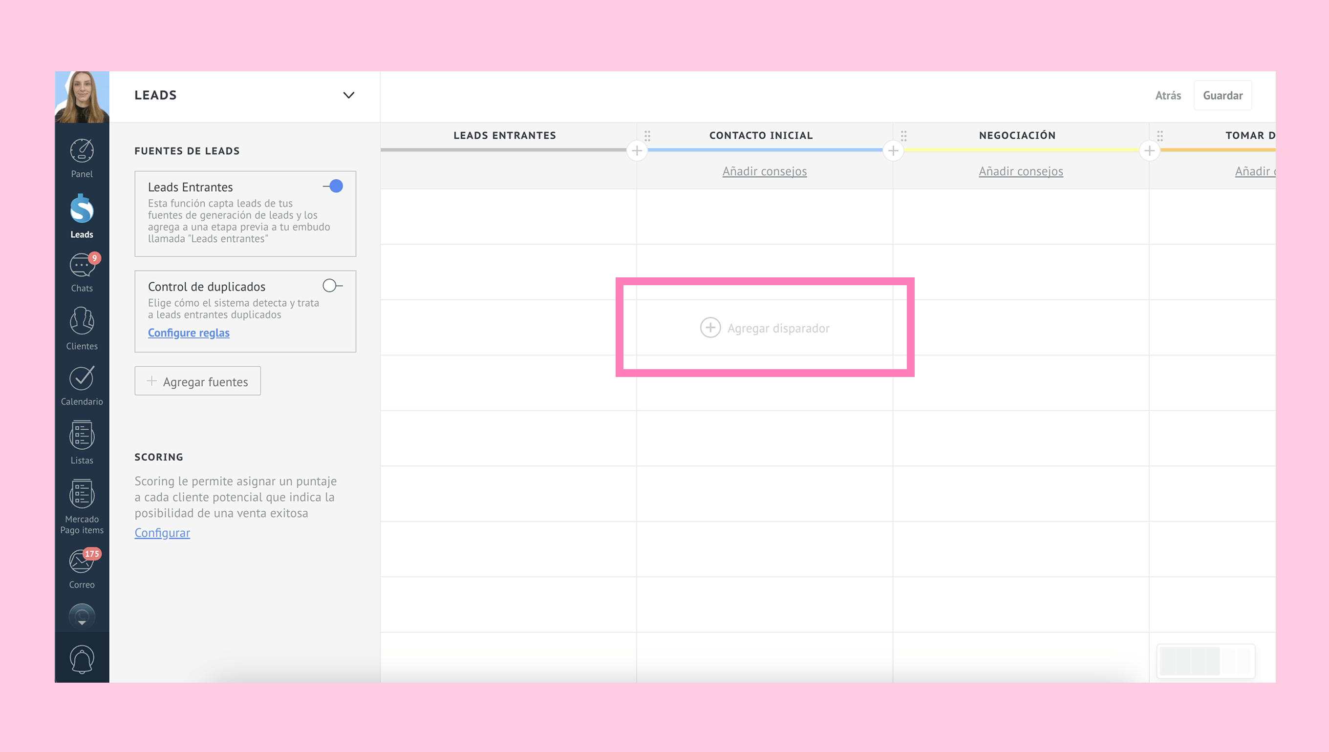 • Desde Leads → Automatiza → + Agregar disparador → Salesbot