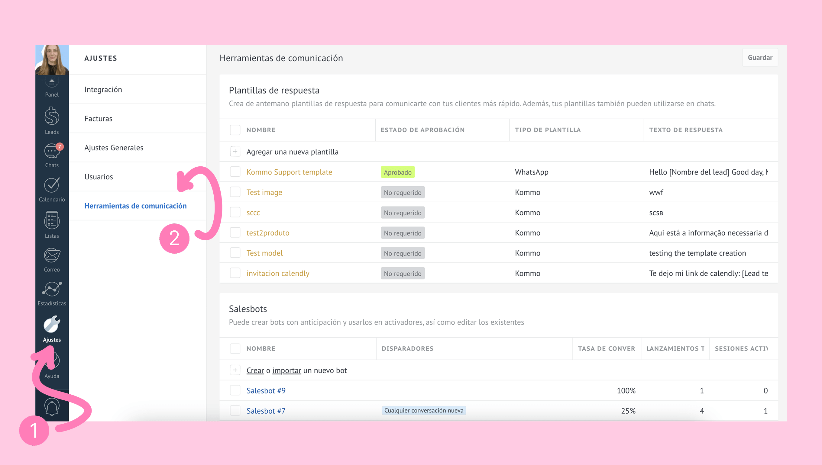 • Desde Ajustes → Herramientas de comunicación → Salesbot