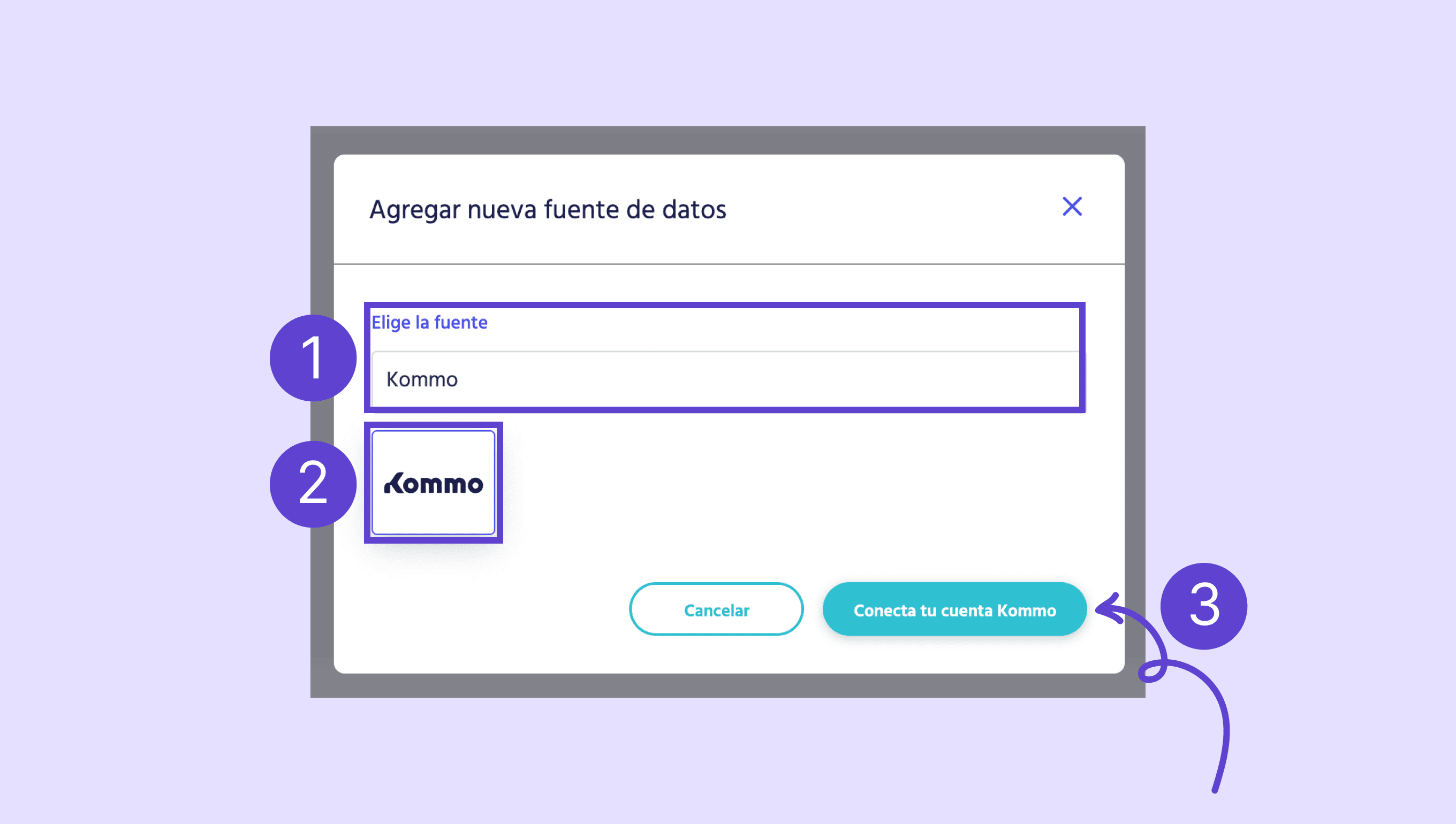 Se abrirá una ventana modal. Busca Kommo y haz clic en el widget; luego, haz clic en Conecta tu cuenta Kommo.