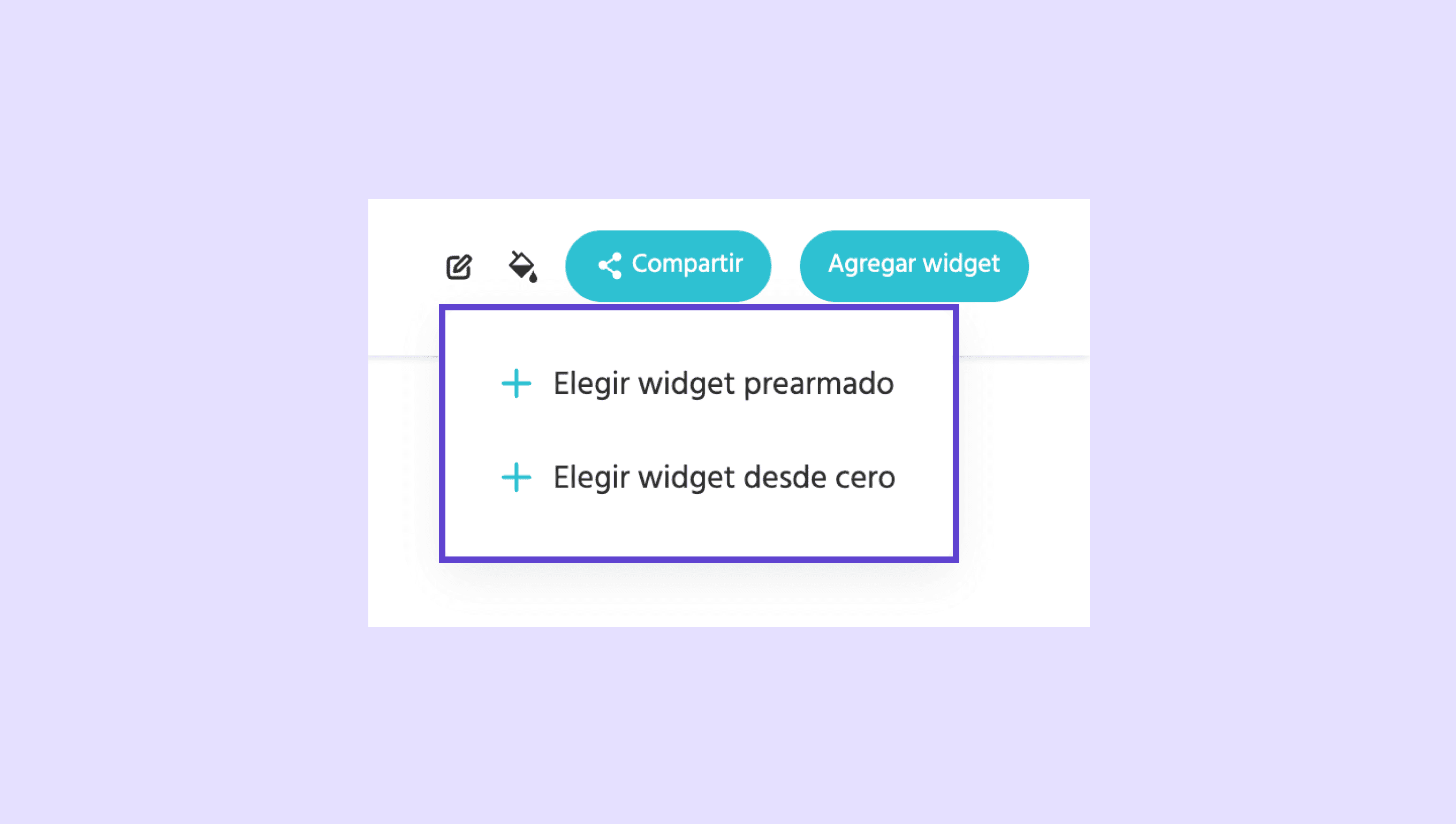 Verás 2 opciones: Elegir widget prearmado o Elegir widget desde cero.