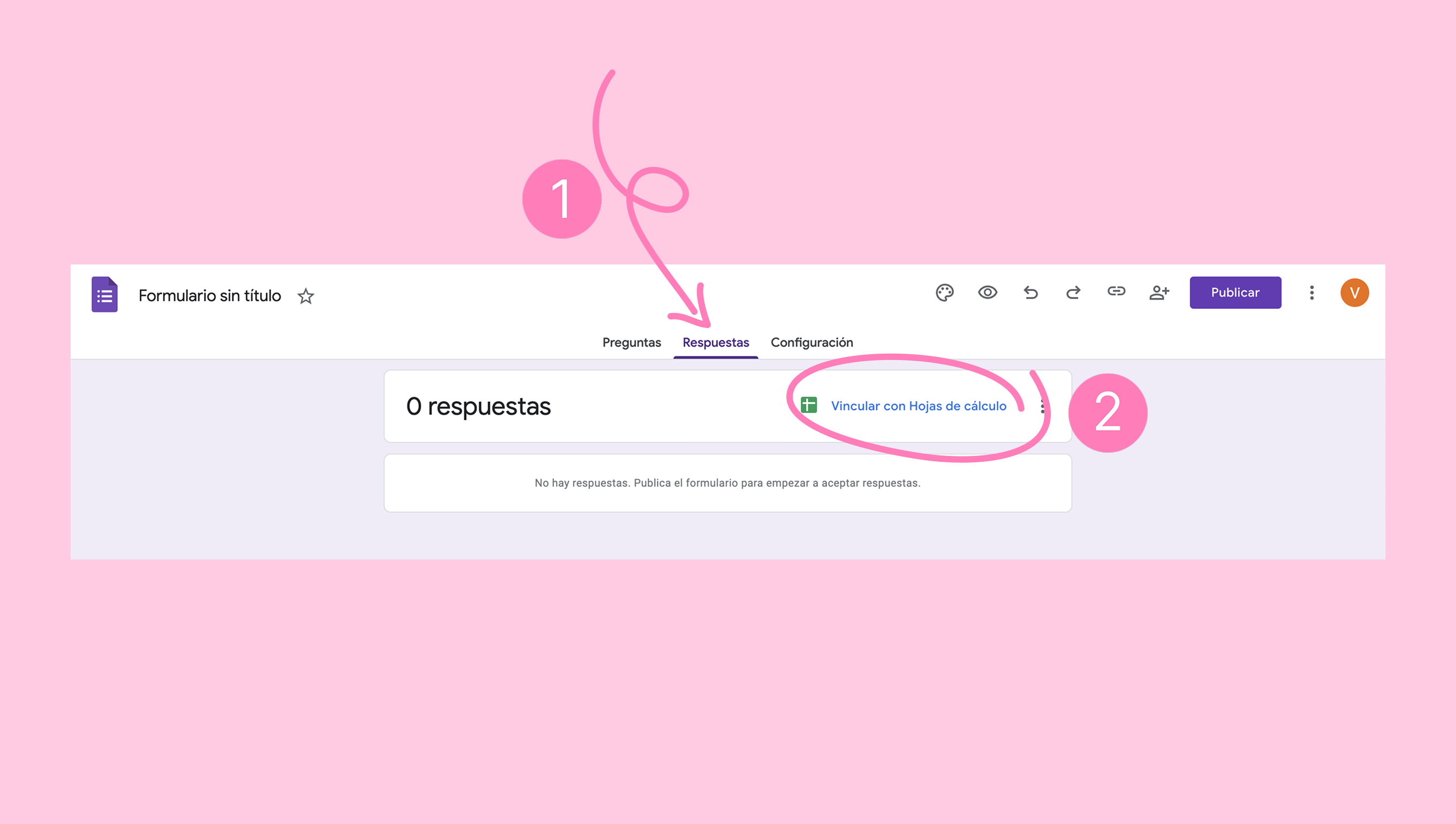 En un Formulario de Google, haz clic en la pestaña Respuestas y luego en Vincular con Hojas de cálculo , y crea una nueva hoja de cálculo.
